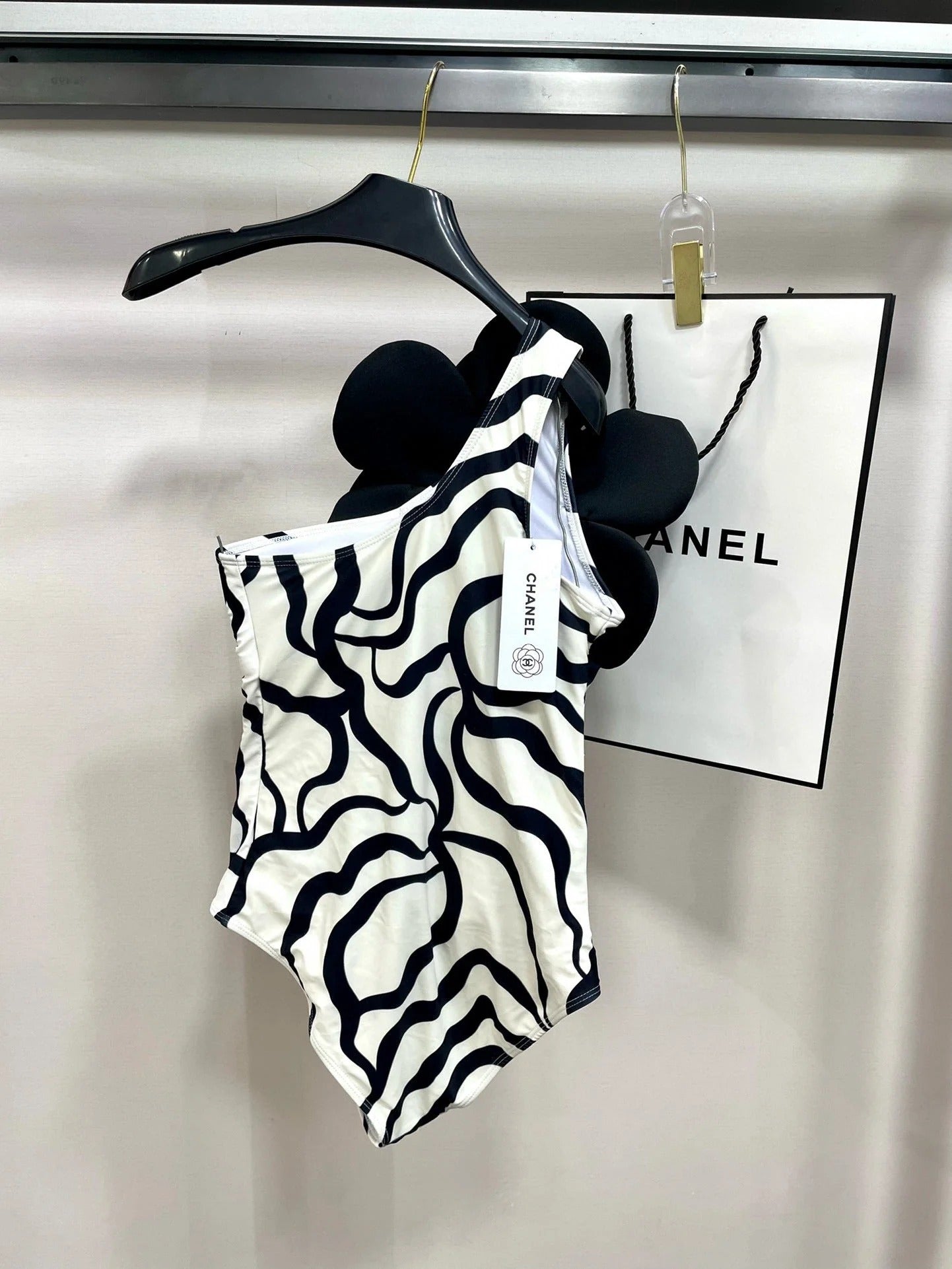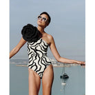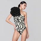 ONE-PIECE SWIMSUIT WITH FLORAL PATTERN IN BLACK AND WHITE 627827