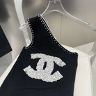 ONE SHOULDER TOP 622139 IN BLACK COTTON EMBOSSED PEARL TRIM