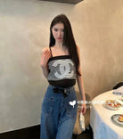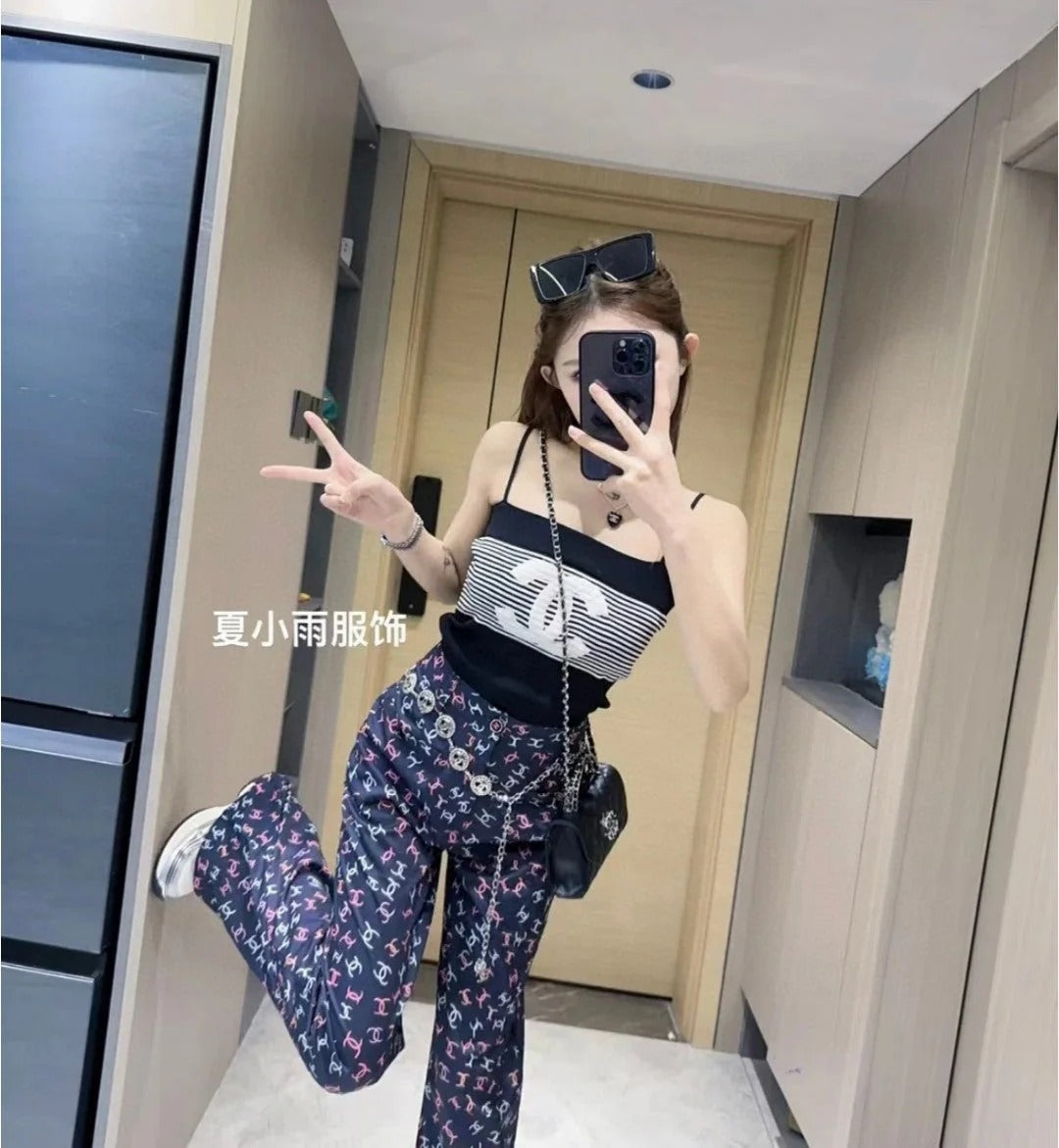 STRIPED CAMISOLE 610345 IN BLACK AND WHITE COTTON RIBBED