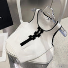 TANK TOP 610341 IN WHITE COTTON RIBBED BLACK BOW