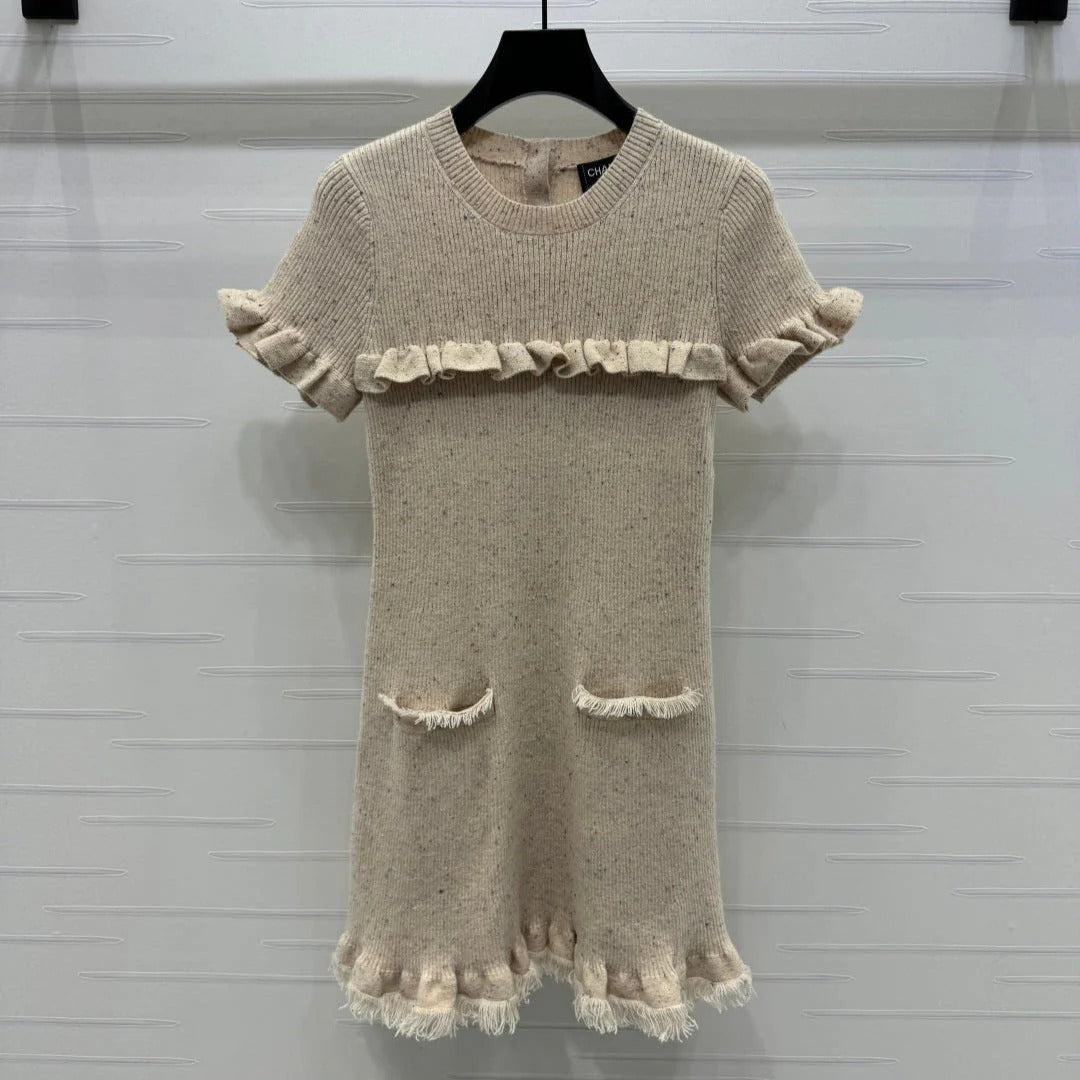 CHANEL SHORT-SLEEVE KNIT DRESS WITH RUFFLED TRIMS 274885
