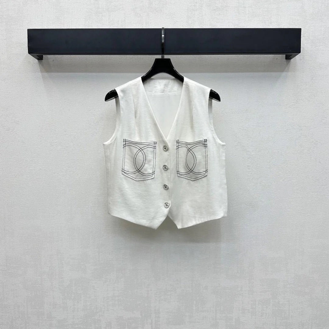 CHANEL EMBROIDERED LOGO OPEN-KNIT VEST 274868