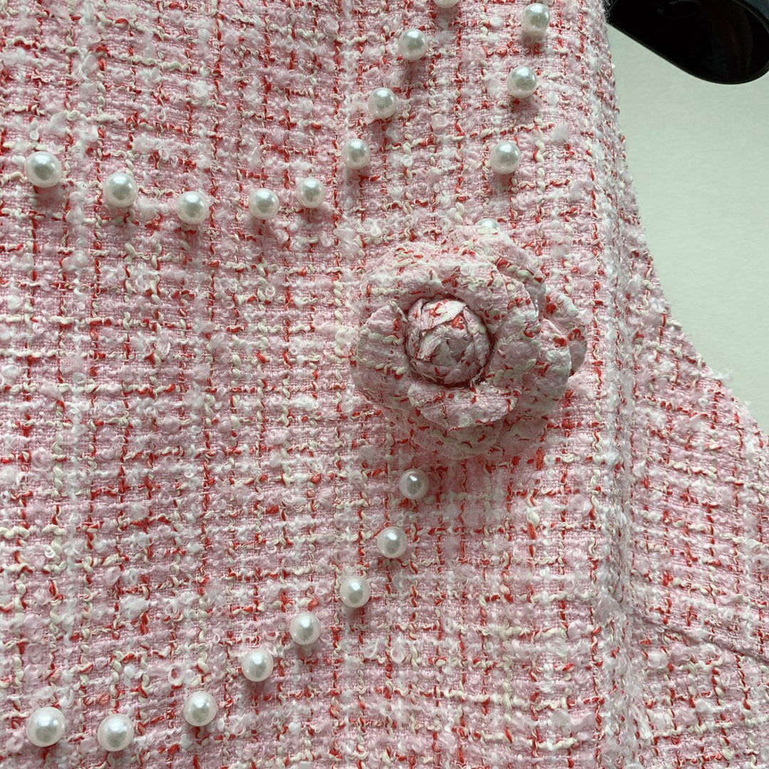 CC Tweed Vest Dress Pink Cotton Polyamide 237351