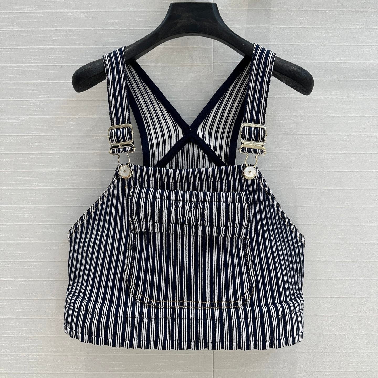 CC 25 Short Suspender Vest Dark Blue mix White Cotton