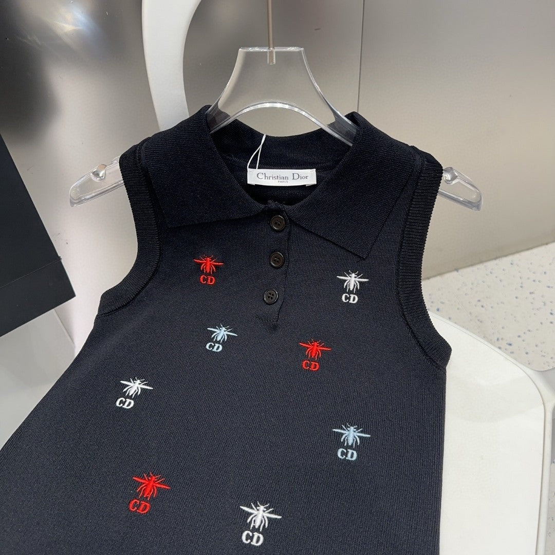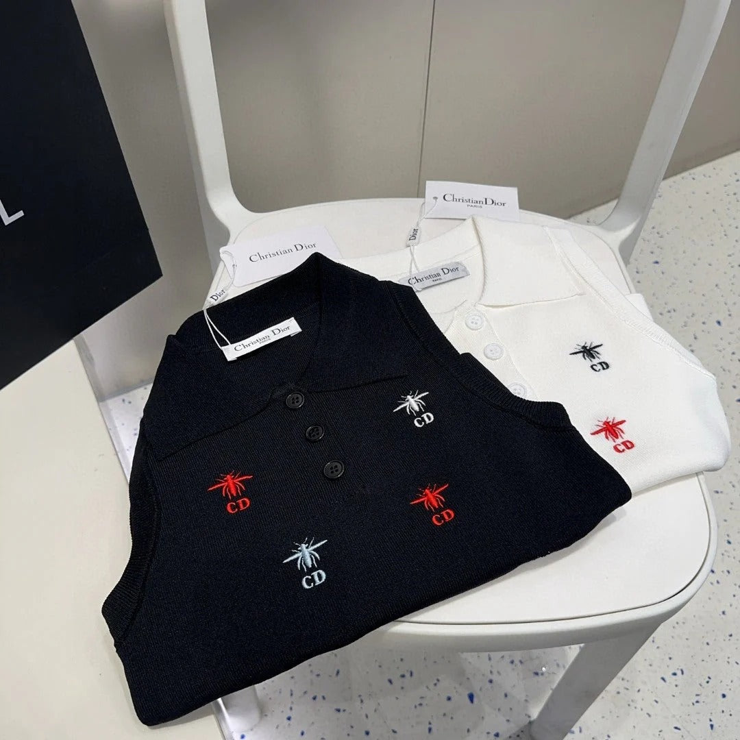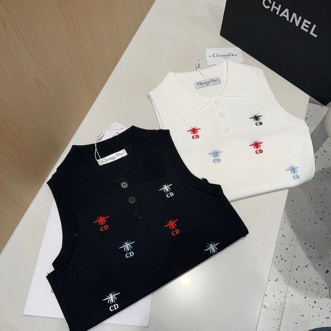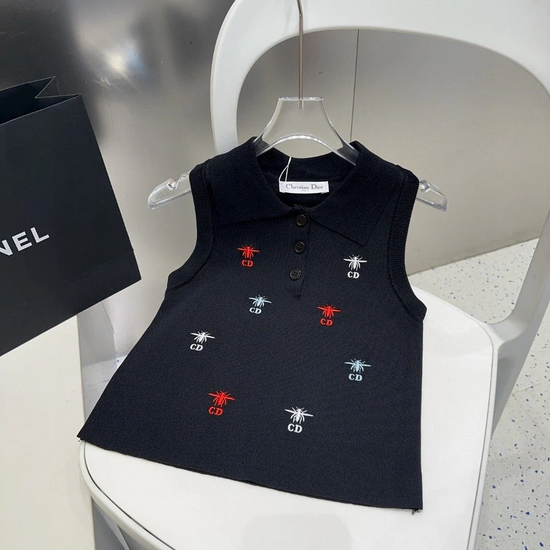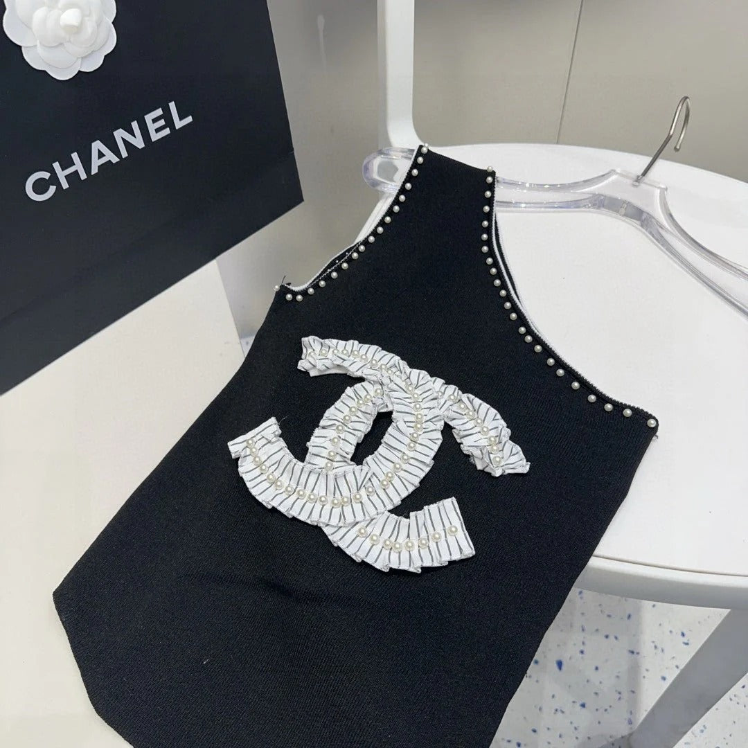 TANK TOP 610340 IN BLACK COTTON RIBBED WHITE BOW