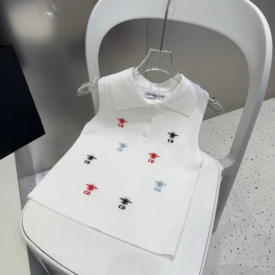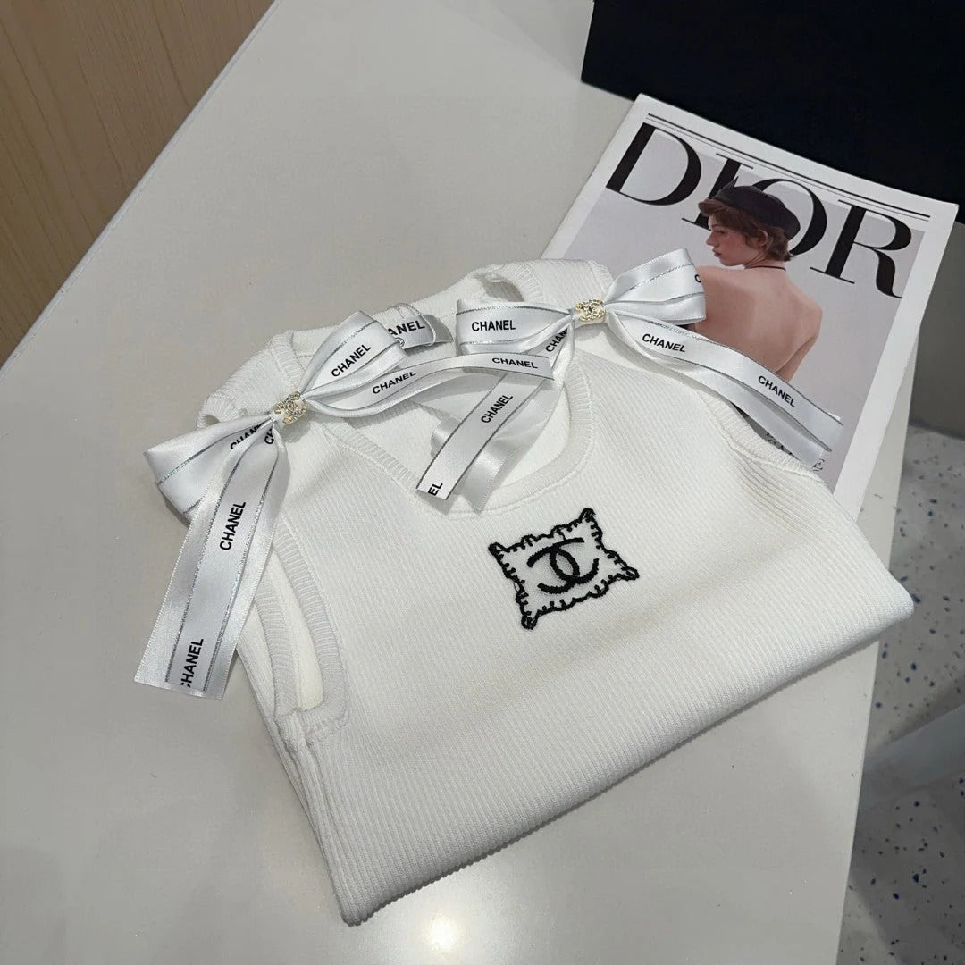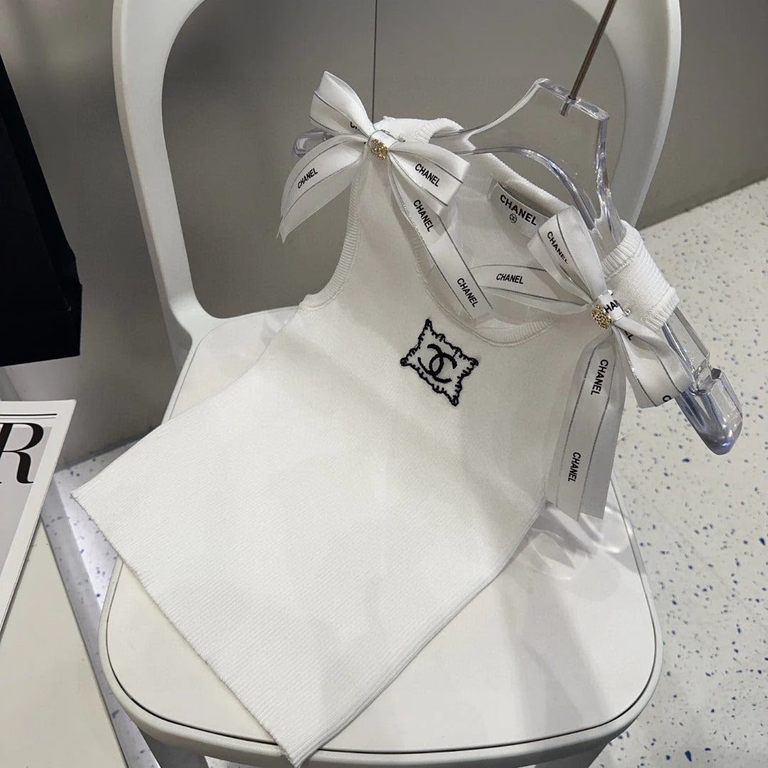 TANK TOP 610341 IN WHITE COTTON RIBBED BLACK BOW