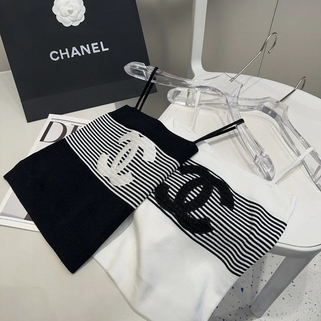 STRIPED CAMISOLE 610345 IN BLACK AND WHITE COTTON RIBBED