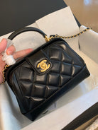 CC 24A 18cm Top Handle Mini Bag Black Lambaskin