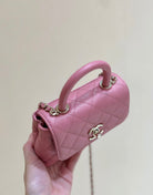 CC 24K Coco Hanle Nano 18cm Pink Grained Calfskin Gold Hardware
