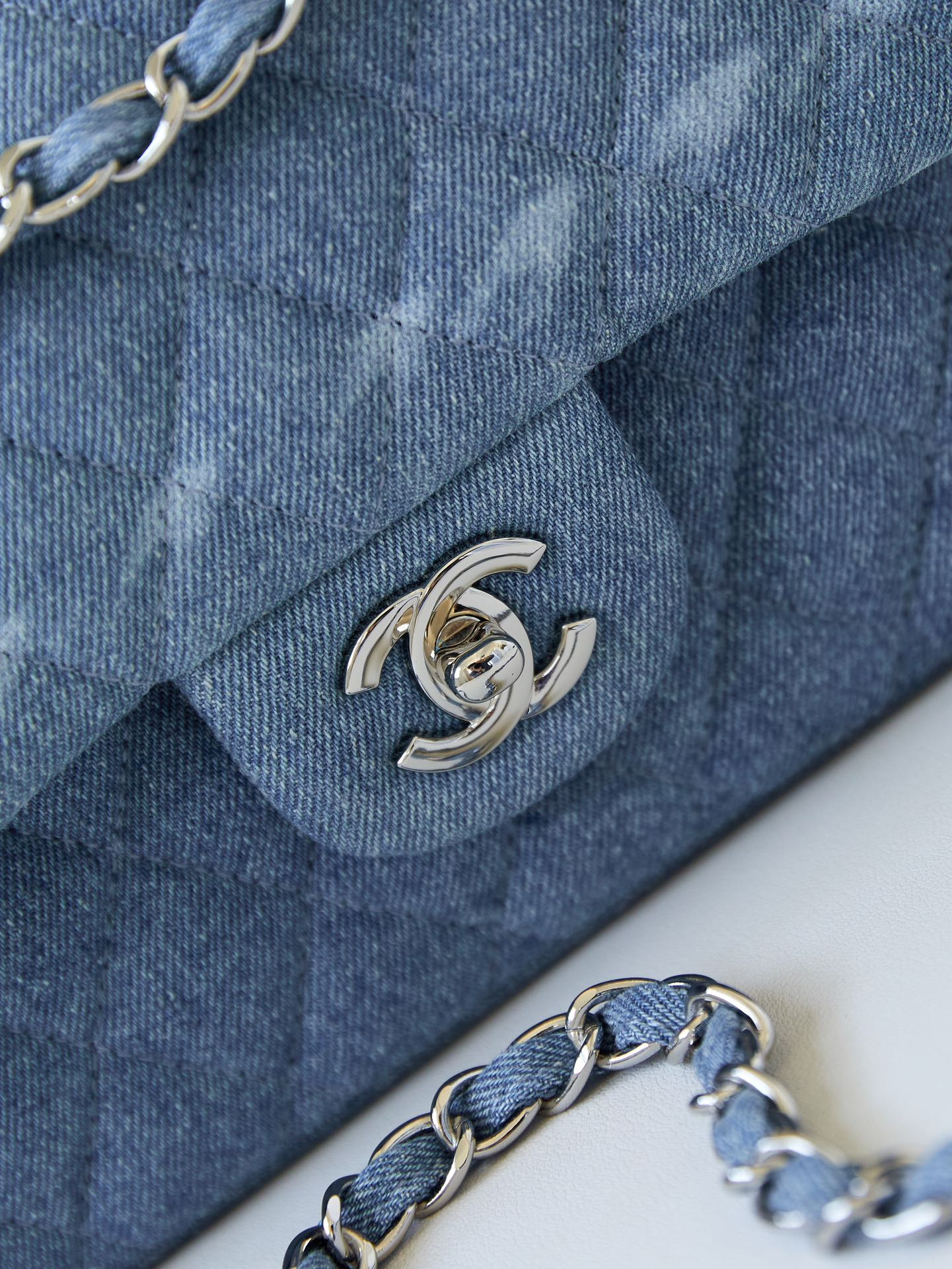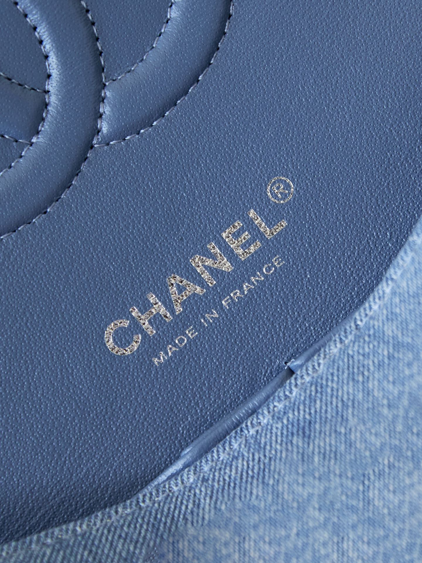 CC 24K Flap Bag 25cm Blue Denim Silver Hardware