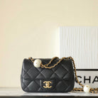 cc 24s mini flap bag 17cm black lambskin pearl ball