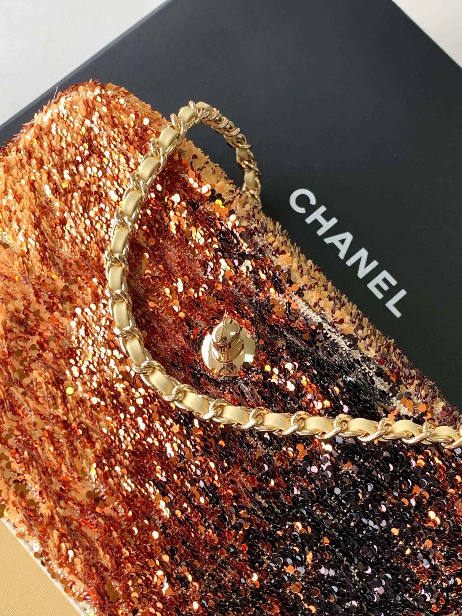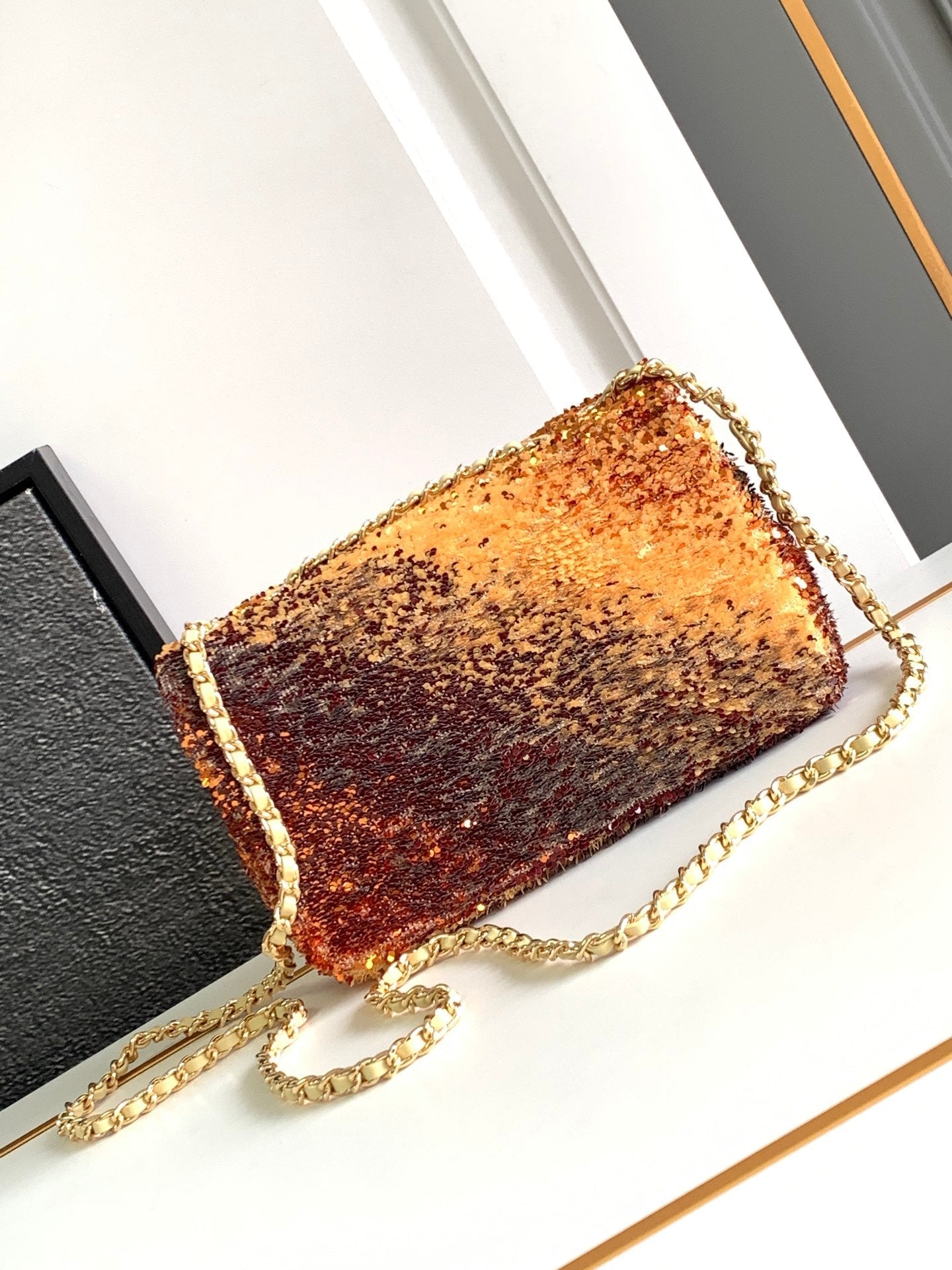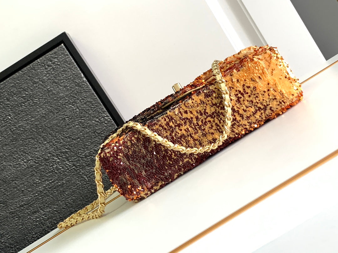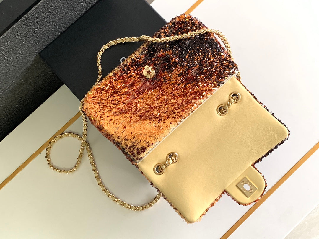 FLAP BAG 20 IN OMBRE ORANGE SAQUINS GOLD HARDWARE