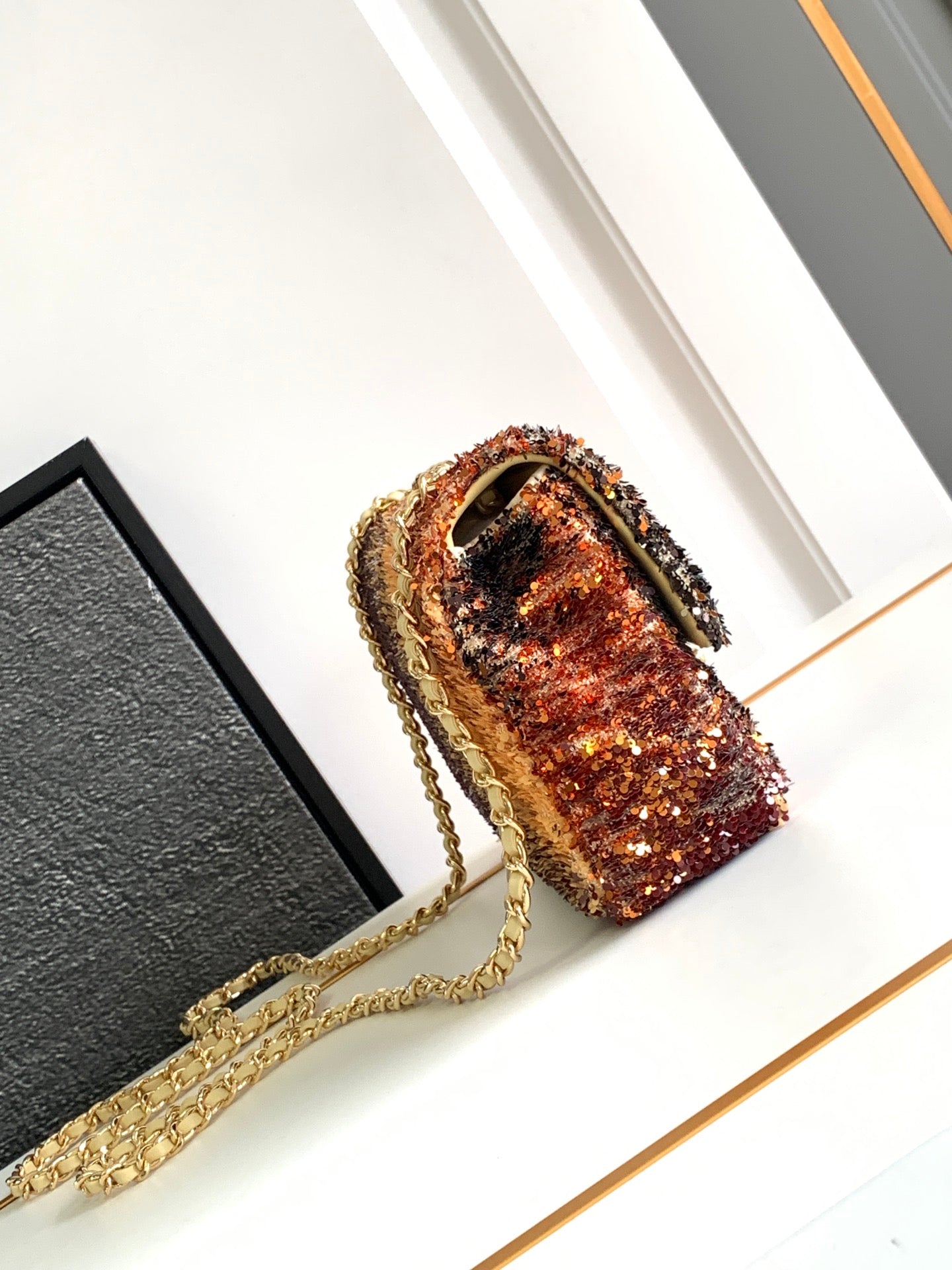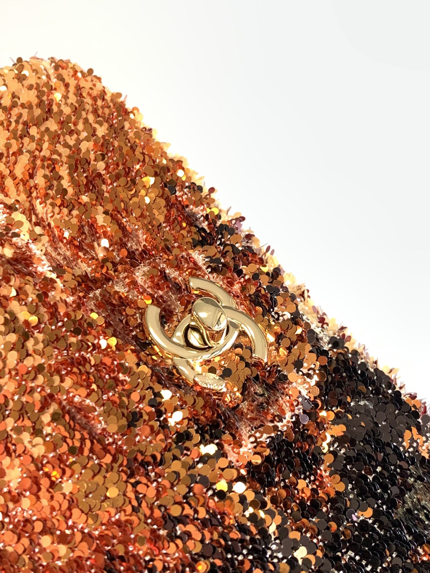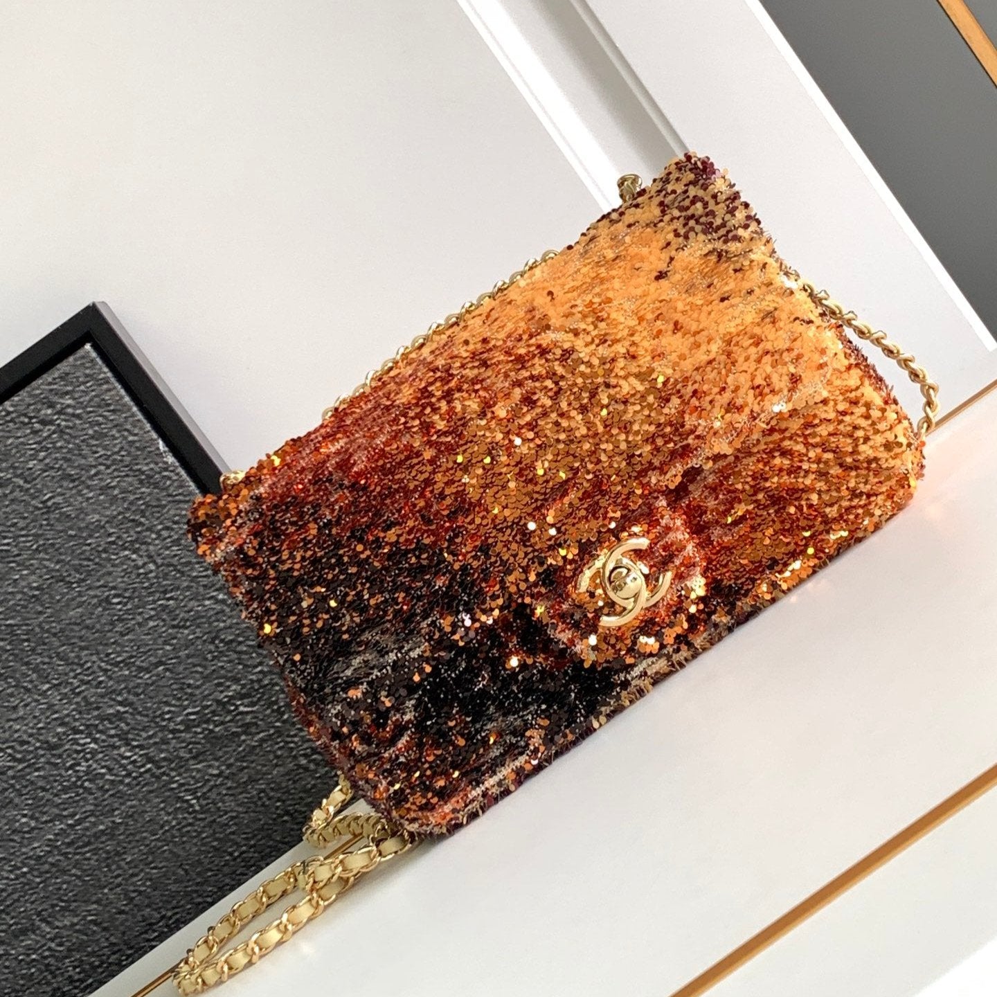 FLAP BAG 20 IN OMBRE ORANGE SAQUINS GOLD HARDWARE