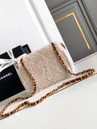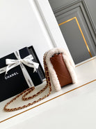 Flap Bag Mini 18cm White Brown Sherling Lambskin Gold Hardware