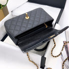 mini flap bag top handle 20cm black caviar gold hardware
