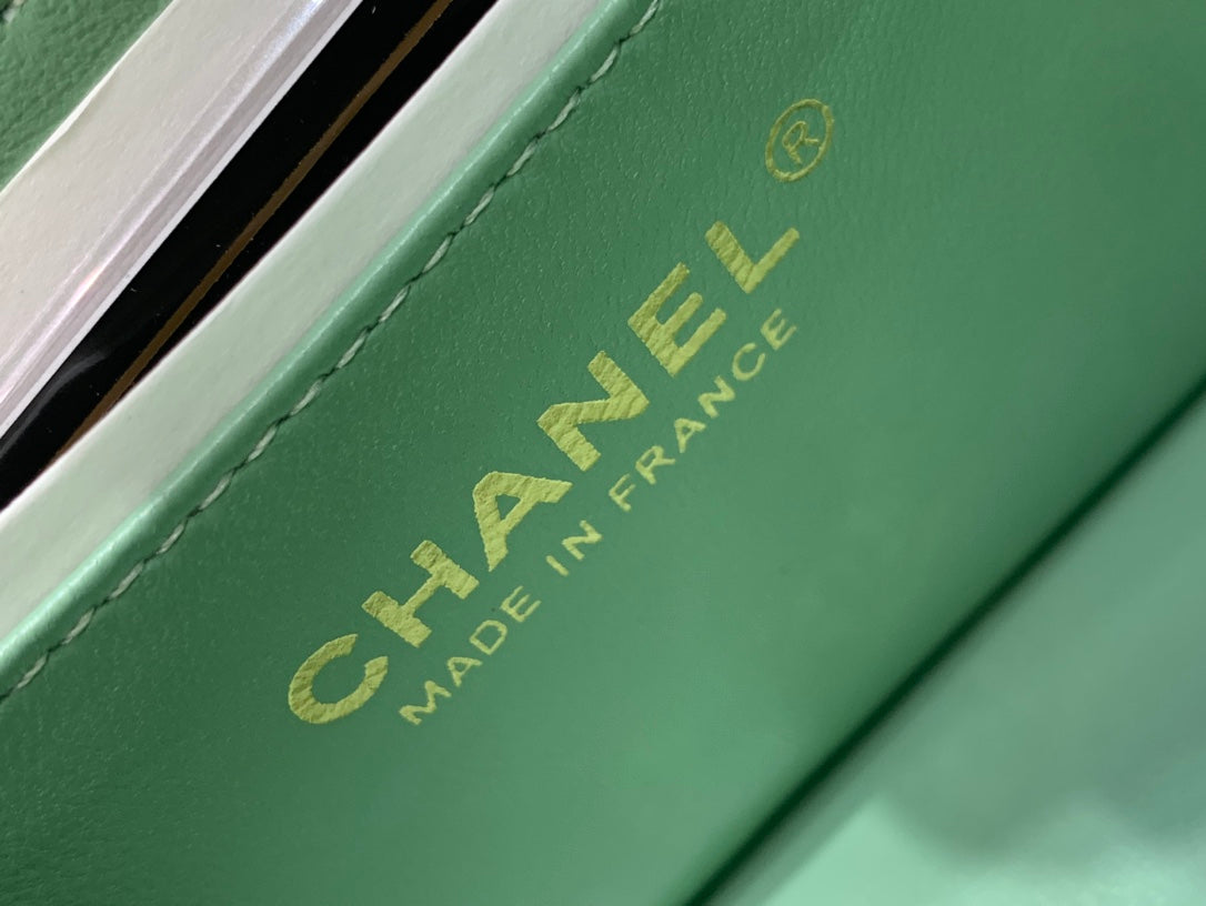 MINI SQUARE FLAP BAG 17CM LIGHT GREEN LAMBSKIN GOLD HARDWARE
