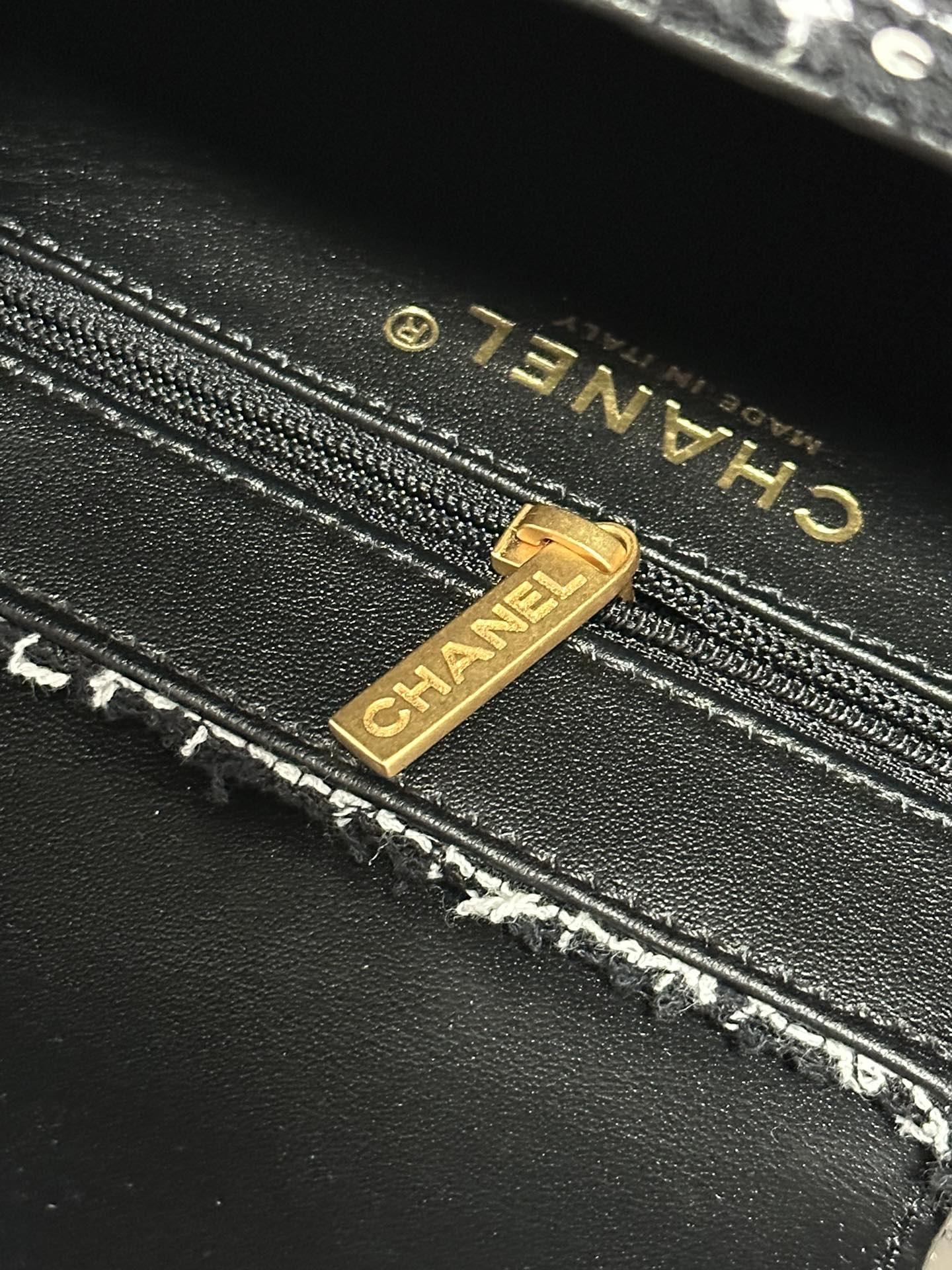 KELLY SHOPPING BAG 19 IN BLACK MIX WHITE TWEED GOLD HARDWARE