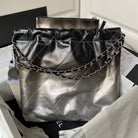 cc 22 hobo 35cm black and silver lambskin silver hardware