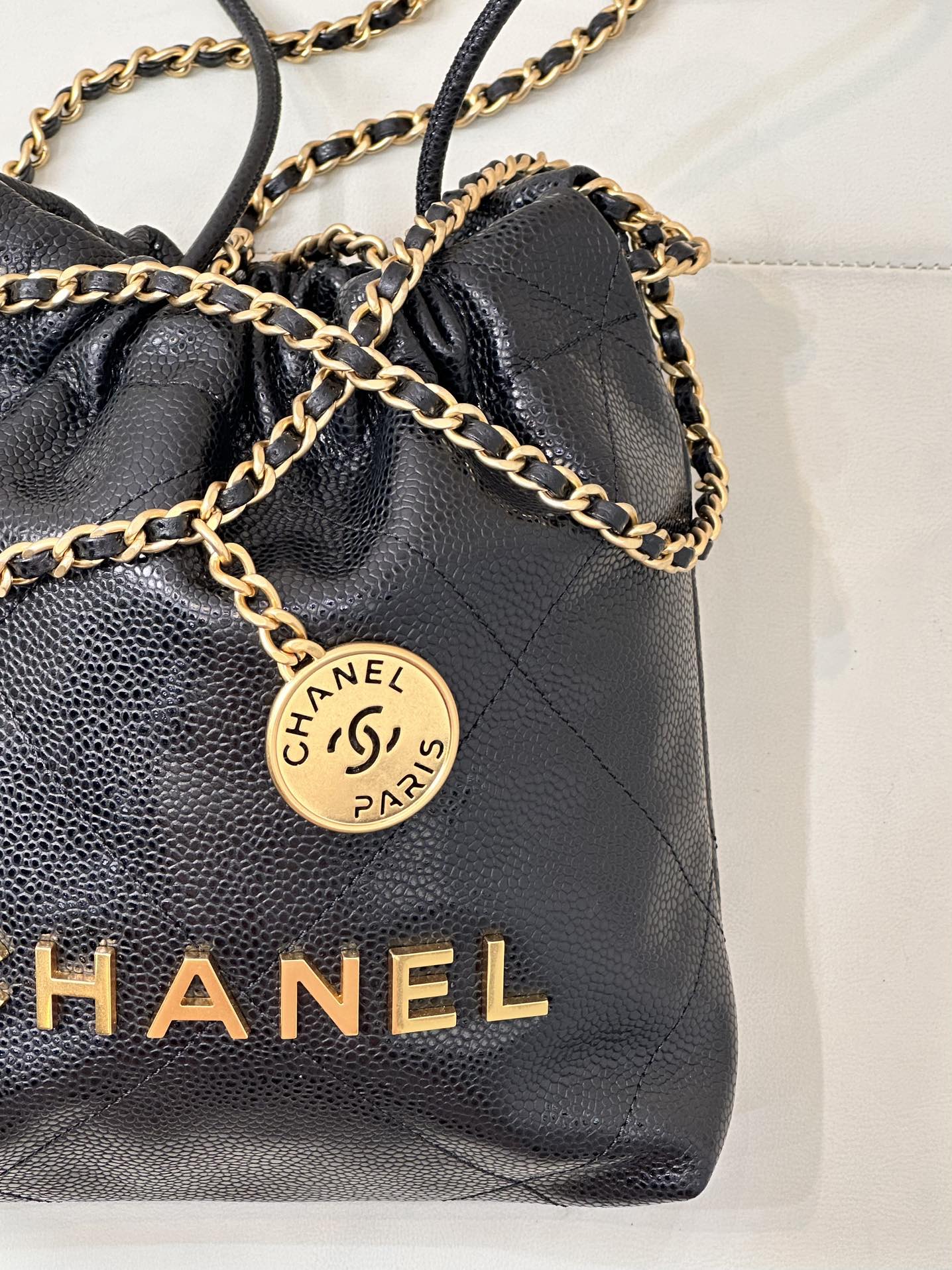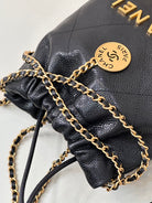 CC 22 Hobo Bag 19cm Black Grained Calfskin Gold Hardware