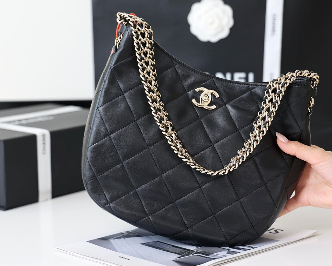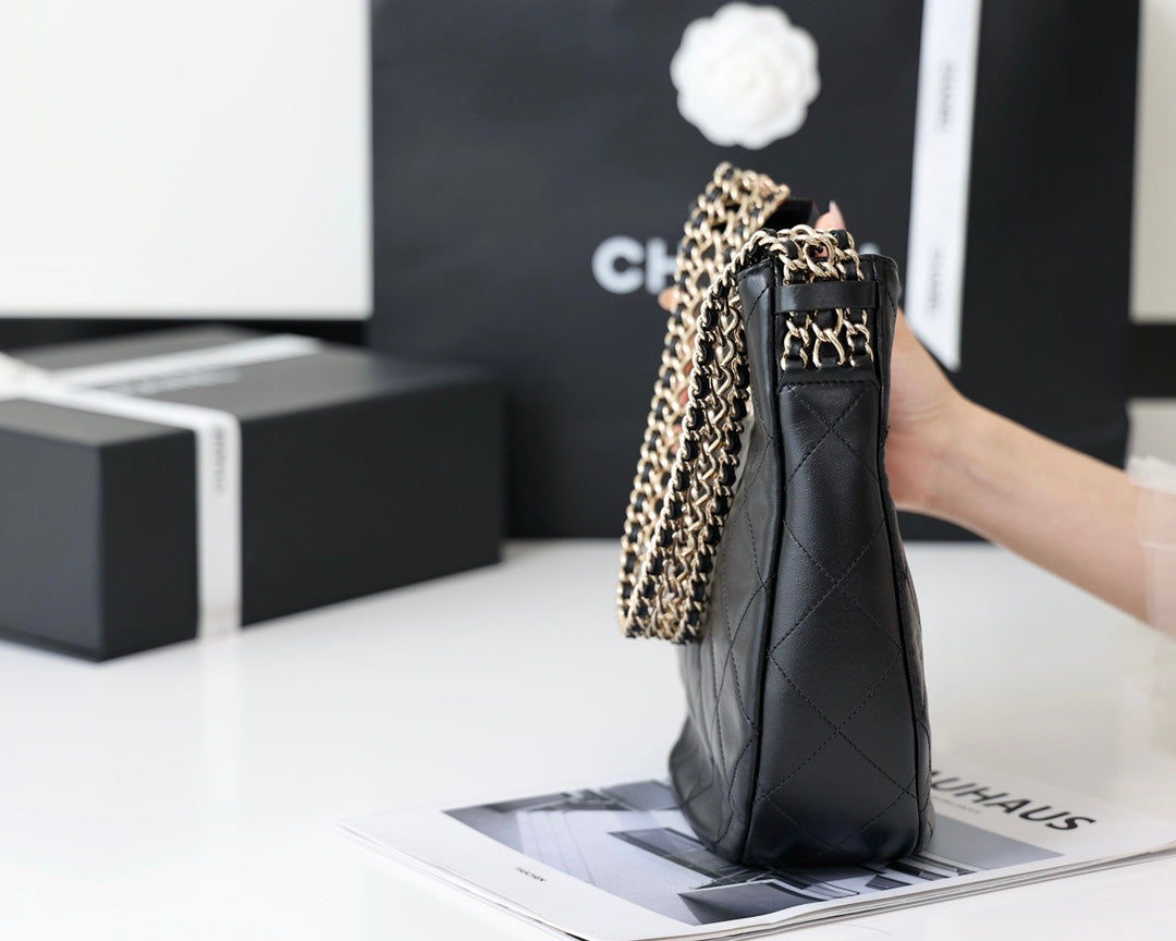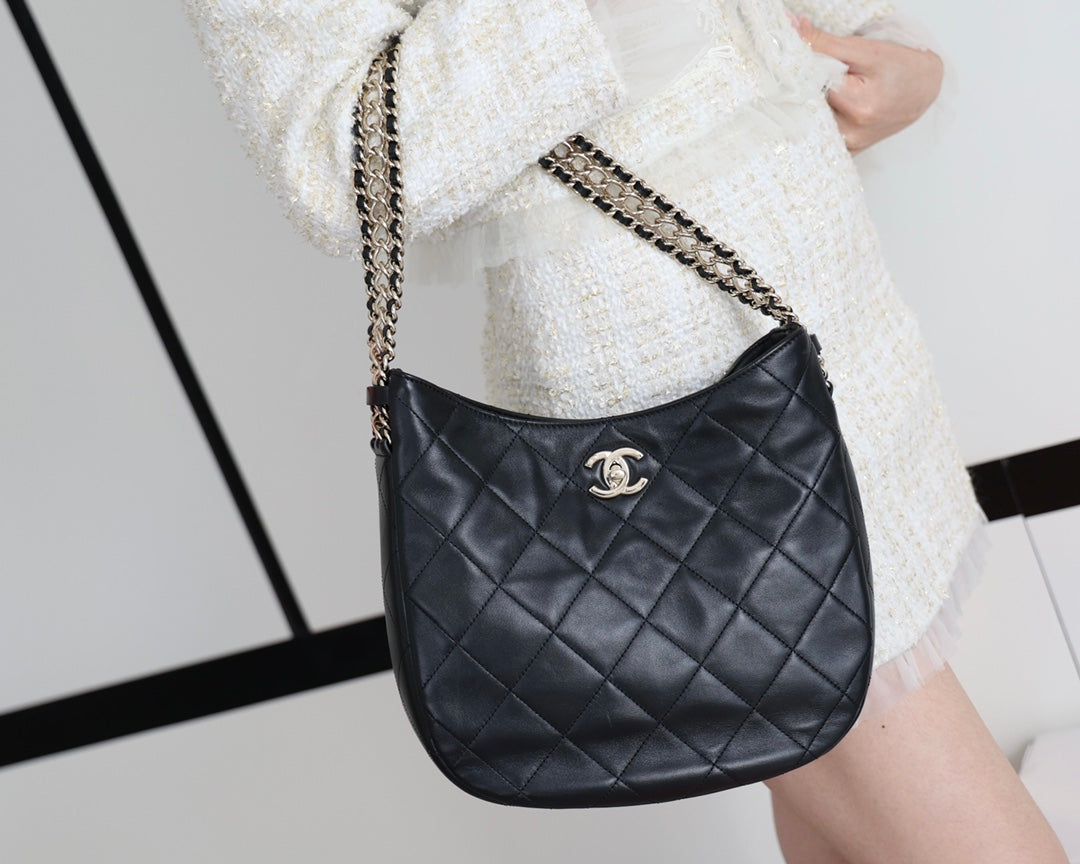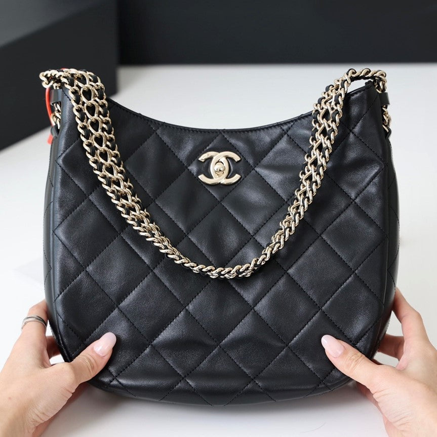 CC 22p Turnlock Hobo 26cm Quilted Black Lambskin Light GHW