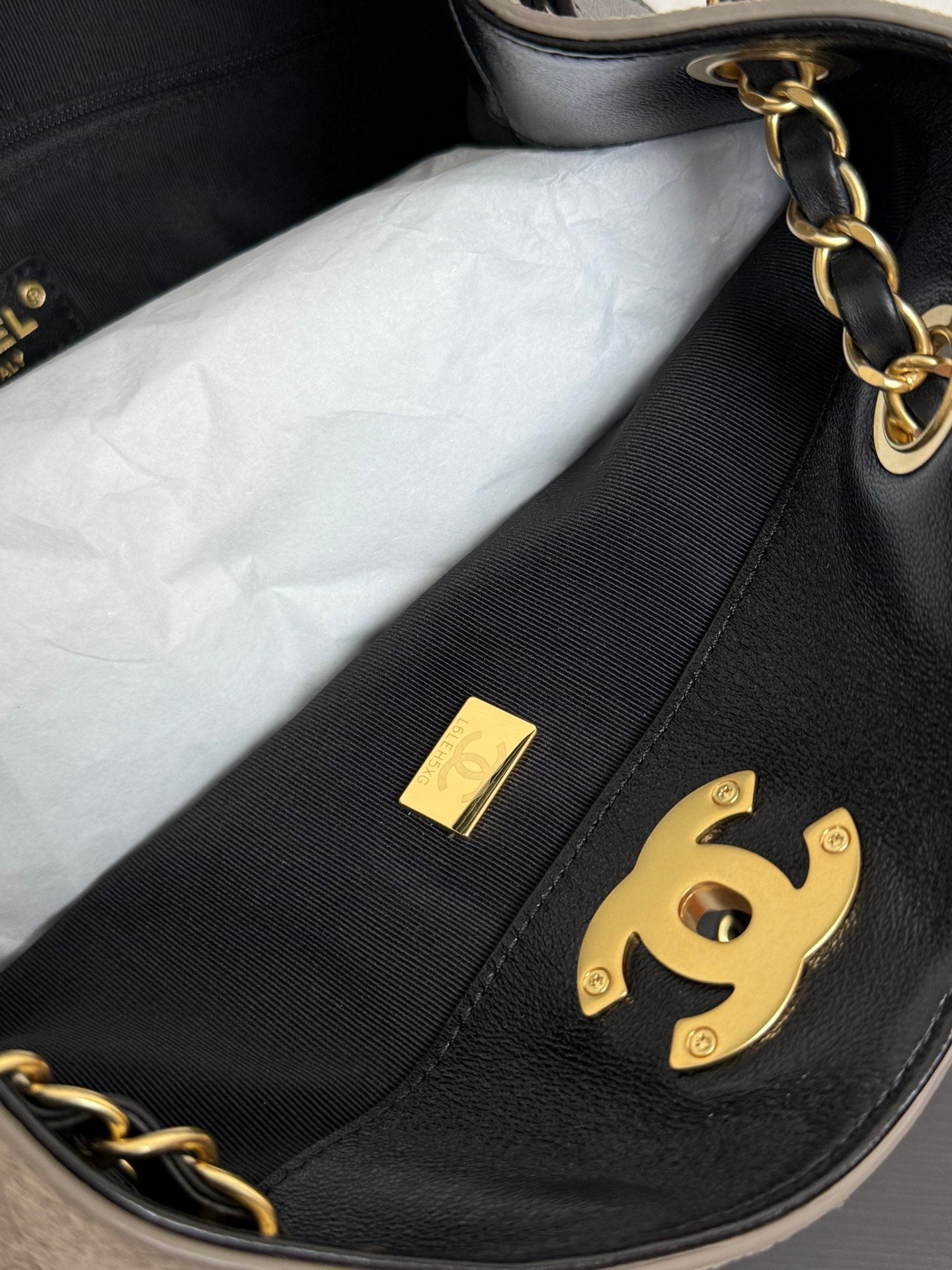 CC 25A Tote 28cm Grey Suede Black Calfskin