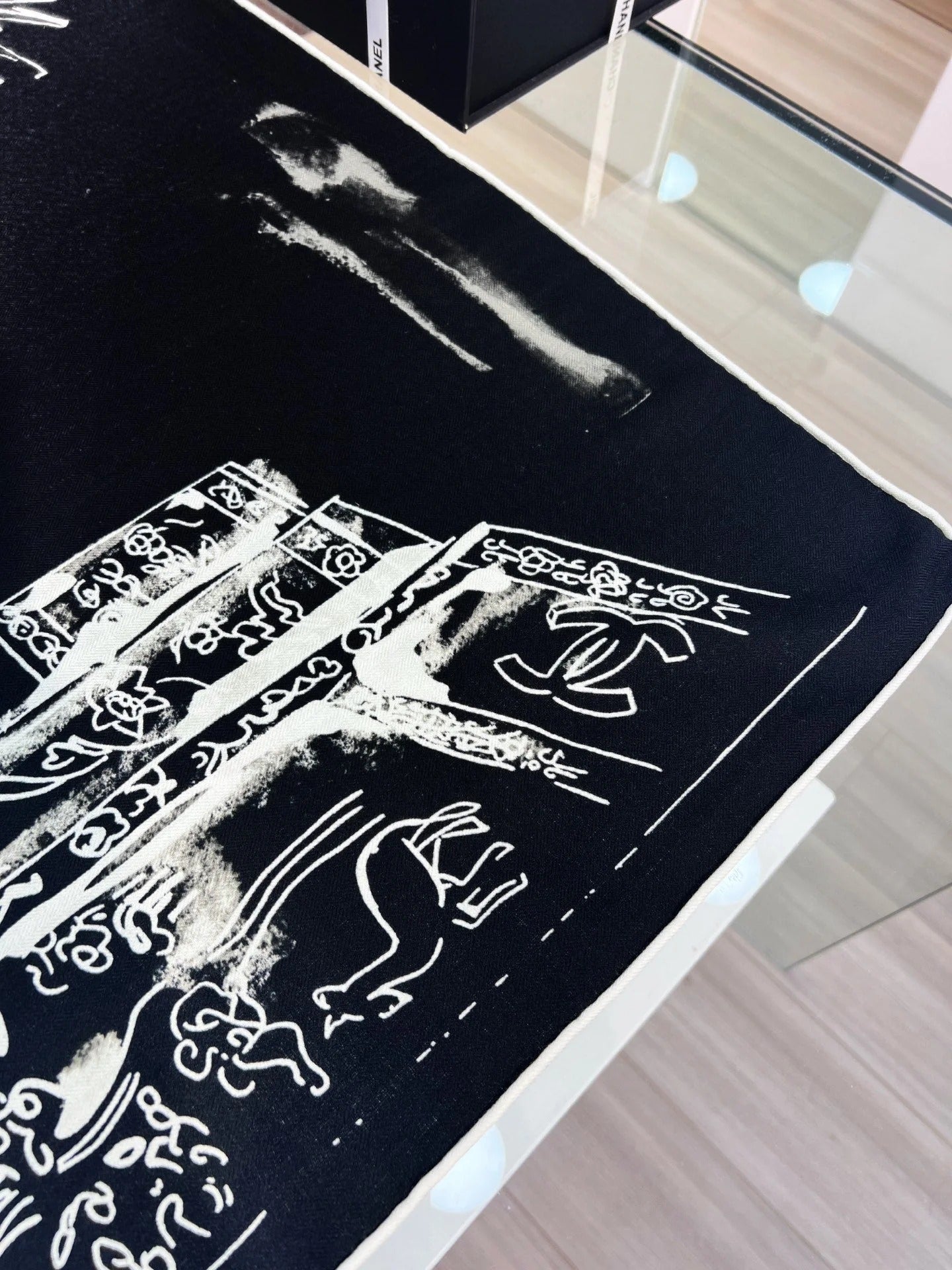 CHANEL 25S SCARF 135 IN CASHMERE SILK 737229