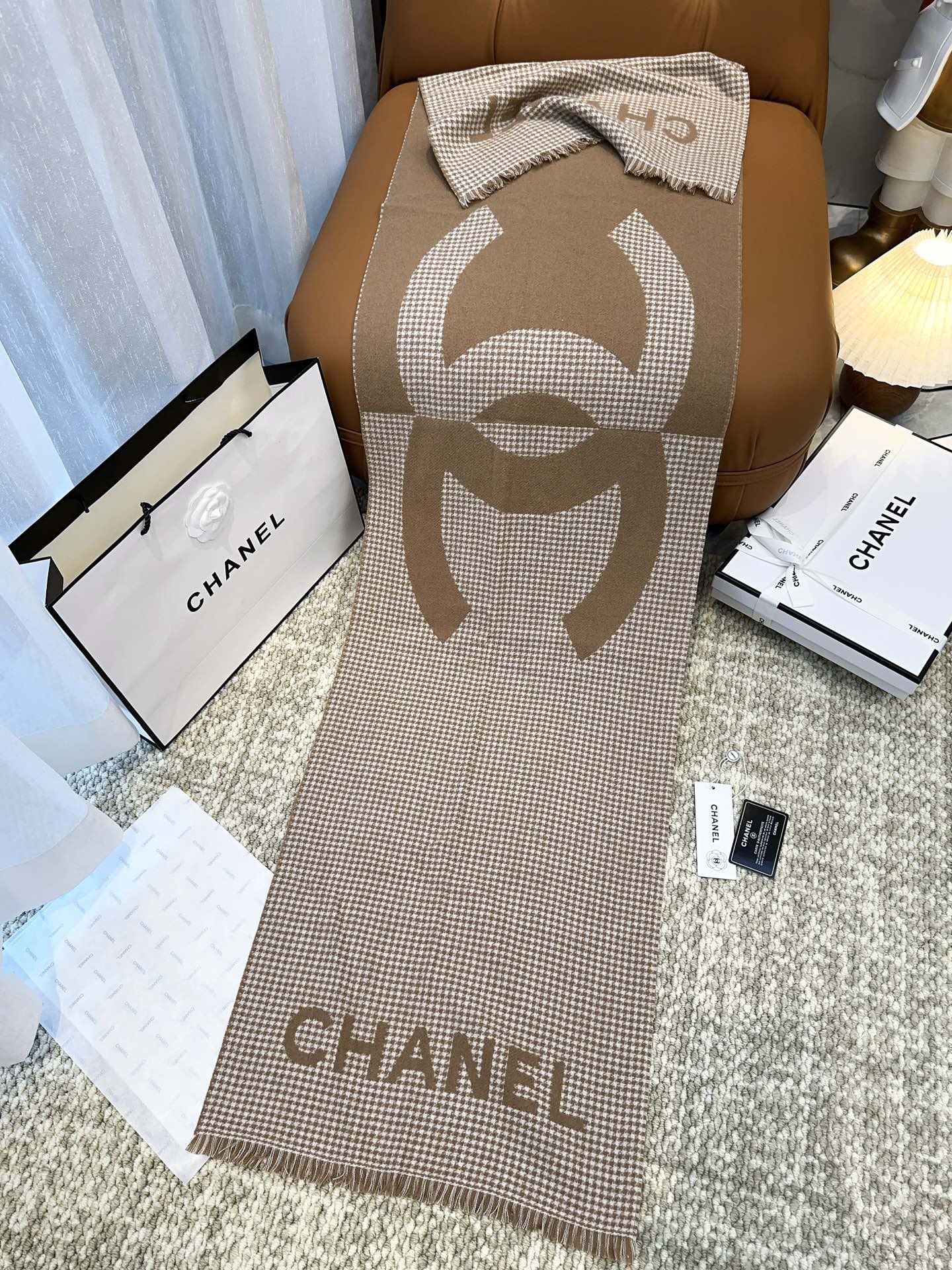 HOUNDSTOOTH SCARF 185 CM IN CAMEL BROWN CASHMERE 393124