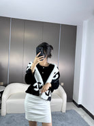 SCARF 120 CM IN BLACK MIX WHITE CASHMERE AND FUR 396432
