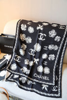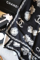 SCARF 180 CM IN BLACK FLOWER MONOGRAM SILK AND CASHMERE 401134