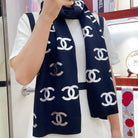 SCARF 190 CM IN NAVY BLUE CASHMERE WITH SILVER LOGO 401171