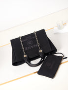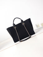 cc deauville shopping small tote 33cm black mixed fabric calfskin