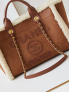 CC Shopping Bag 32cm Brown Beige Sherling Lambskin
