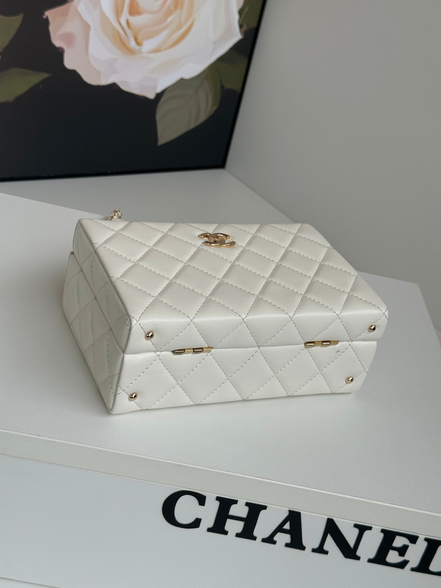SMALL BOX BAG 18 IN WHITE LAMBSKIN GOLD HARDWARE