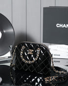 SMALL SHOPPING BAG 20 IN BLACK GLOSSY CALFSKIN GOLD HARDWARE