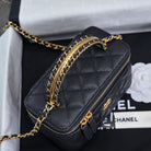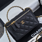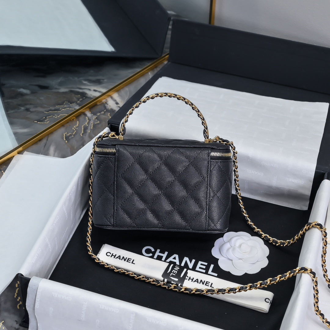 CC 24A Vanity Top Handle 16cm Black Grained Calfskin Gold Hardware