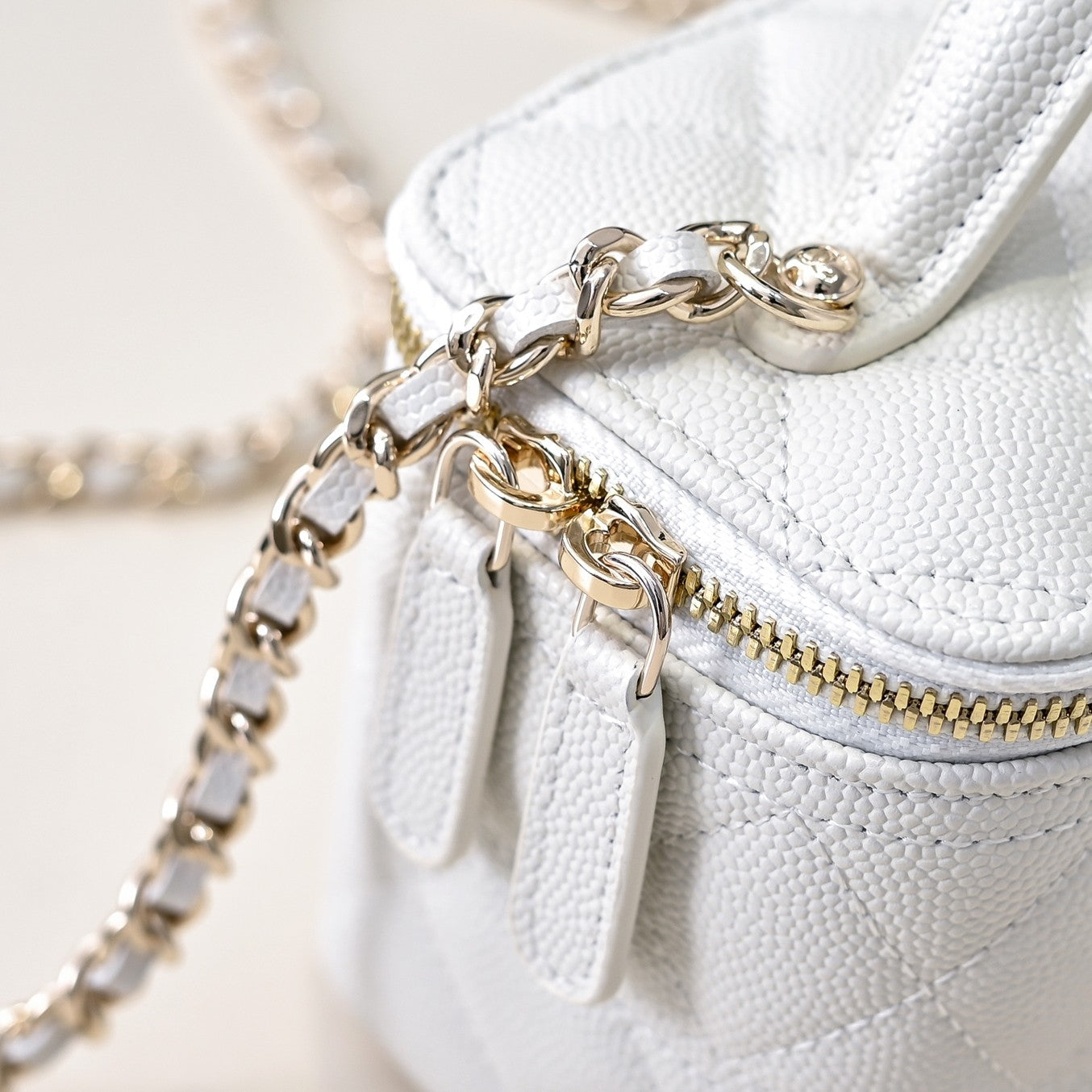 CC 25C Vanity Top Handle 17cm White Grained Calfskin Light Gold Hardware
