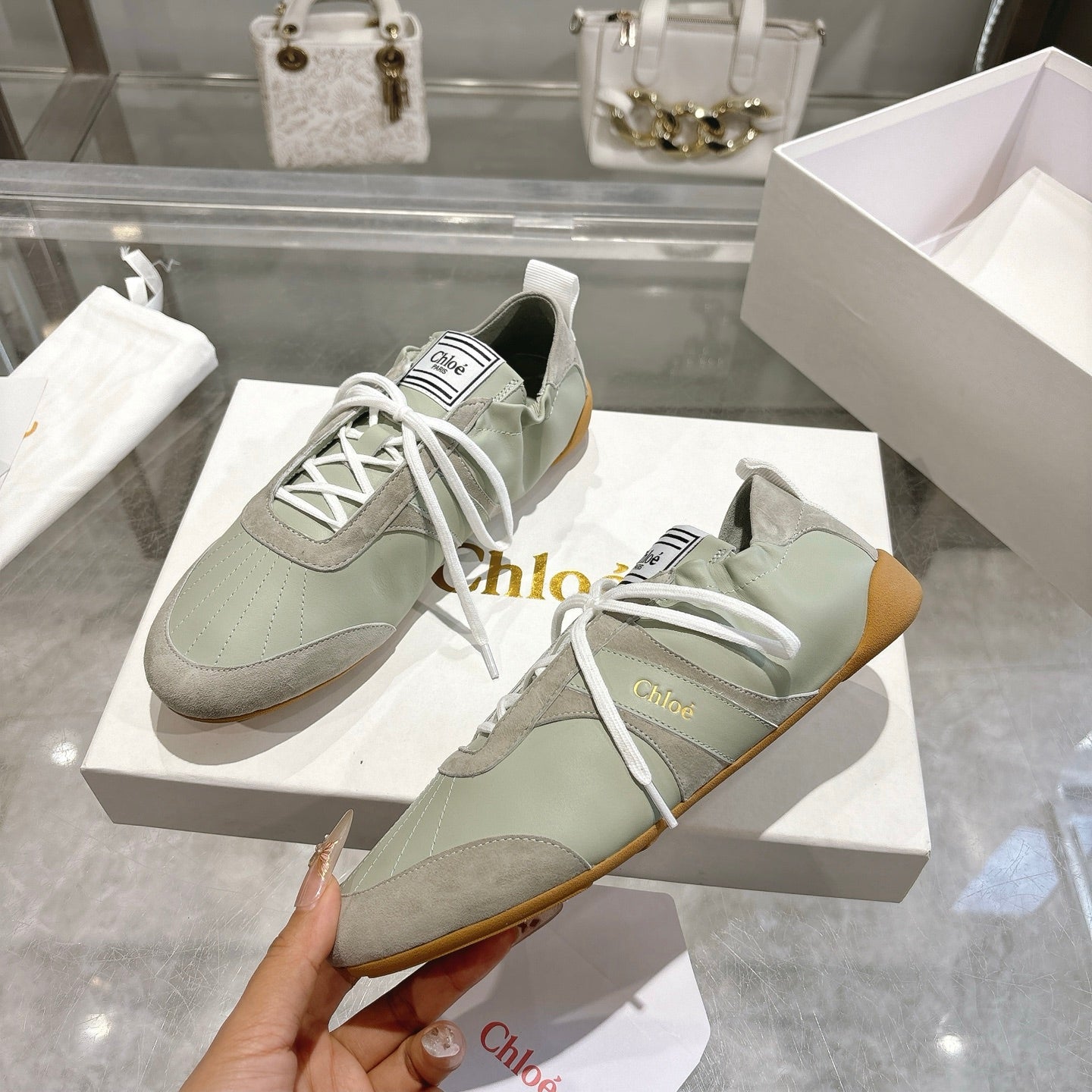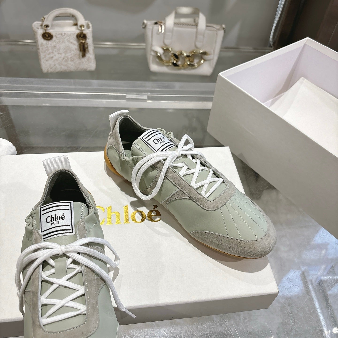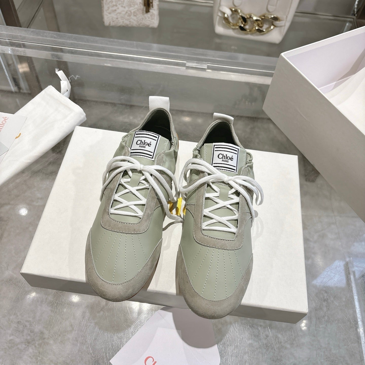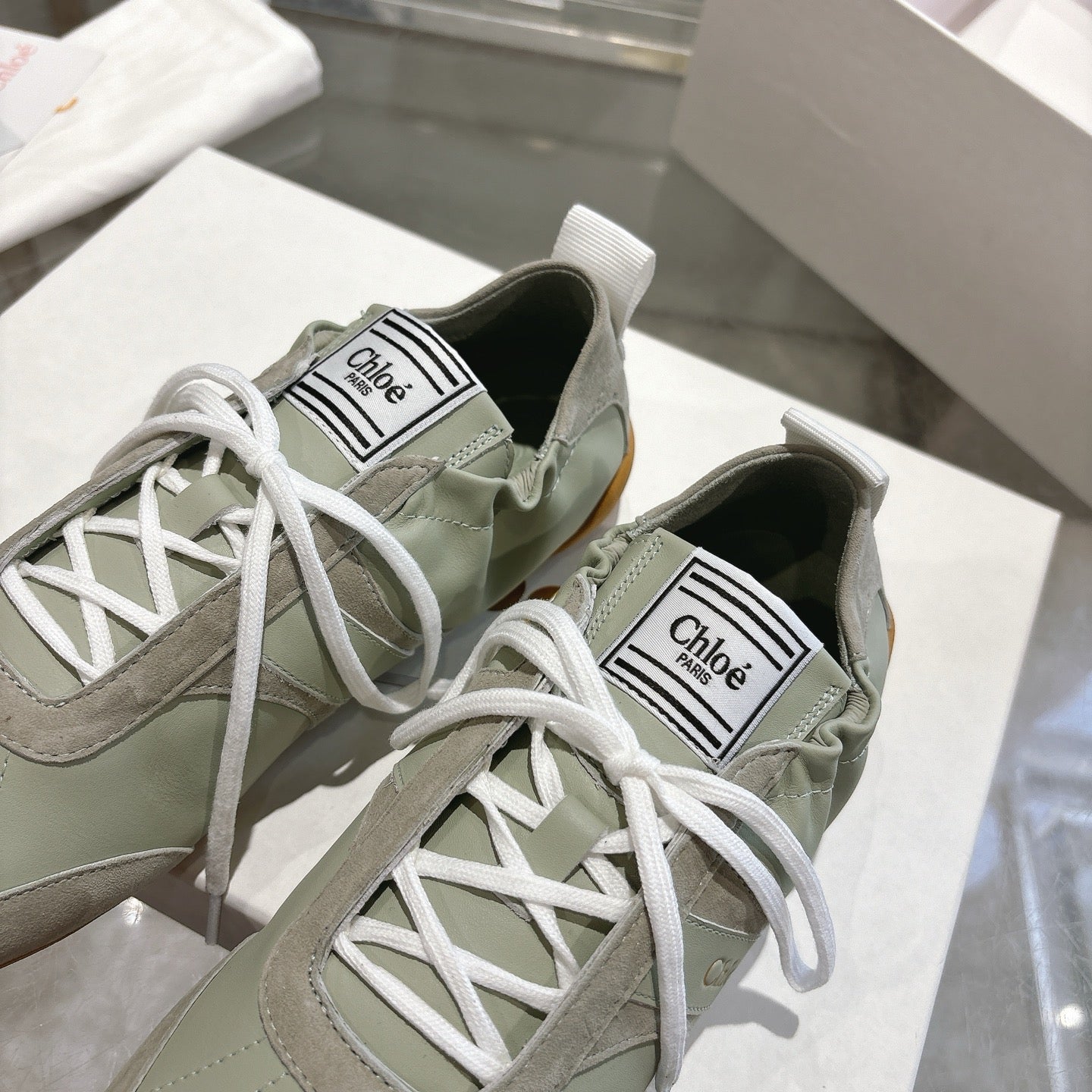 Chloe Sneaker casual shoes light sage green cowhide 518813