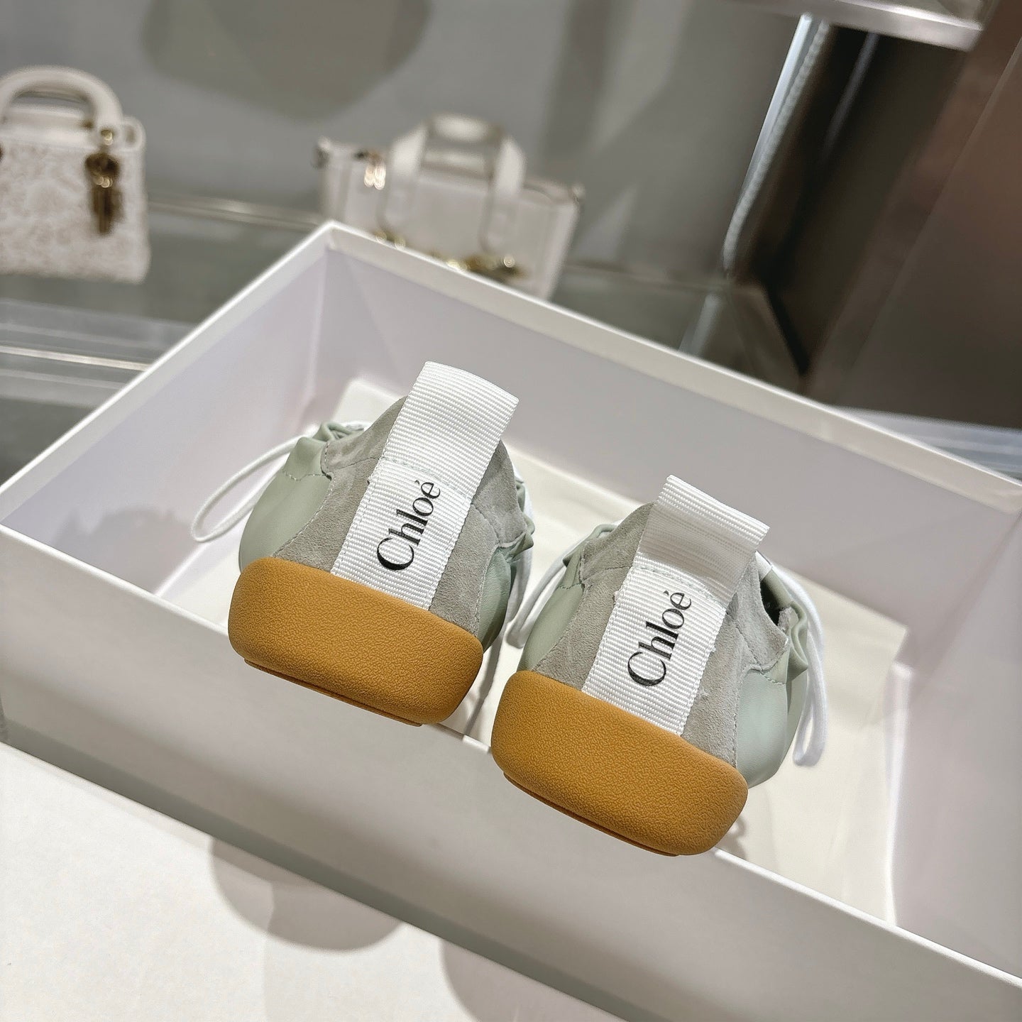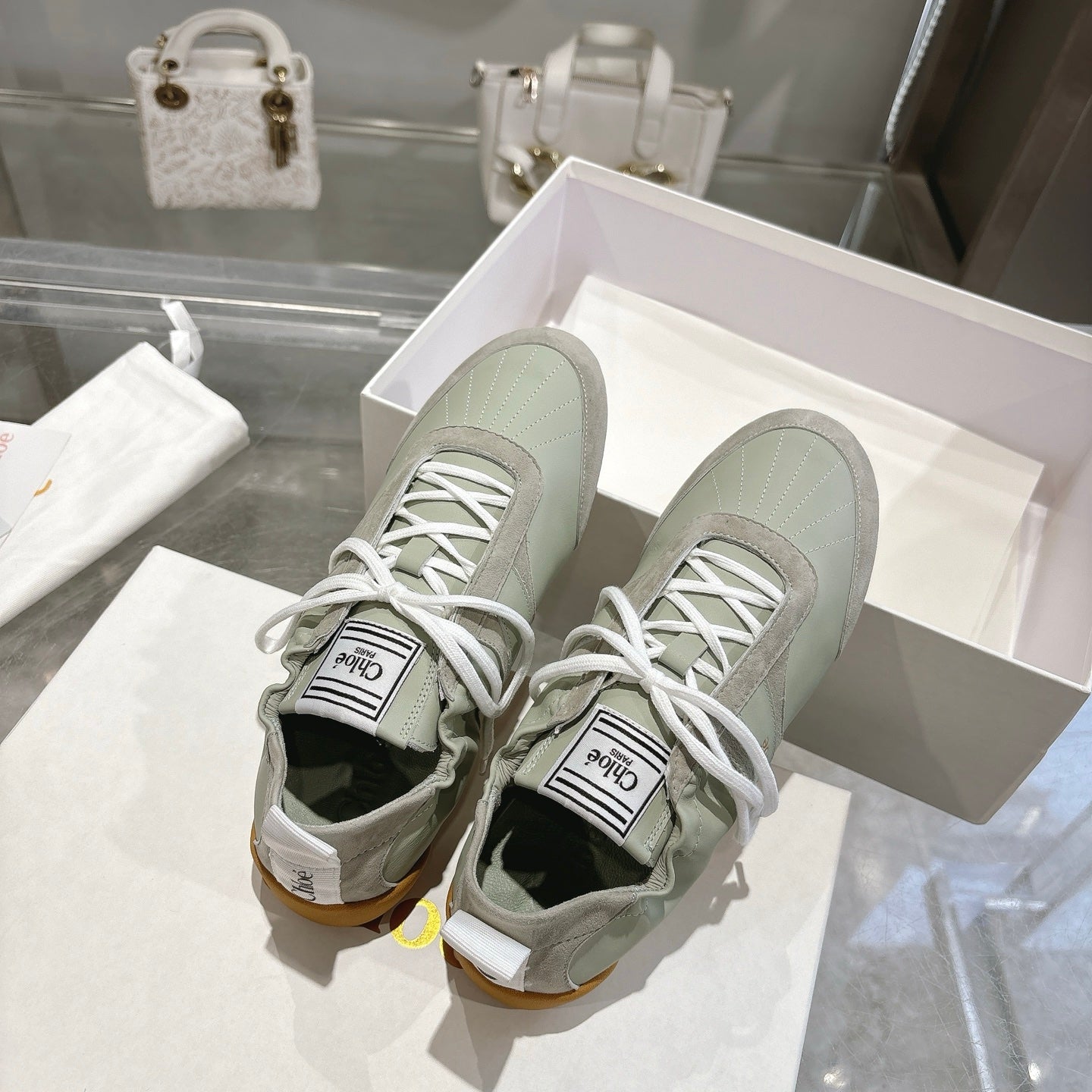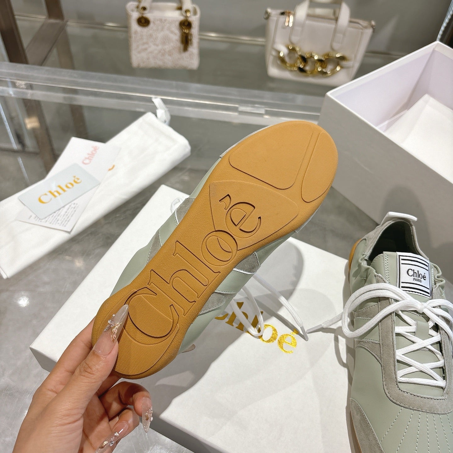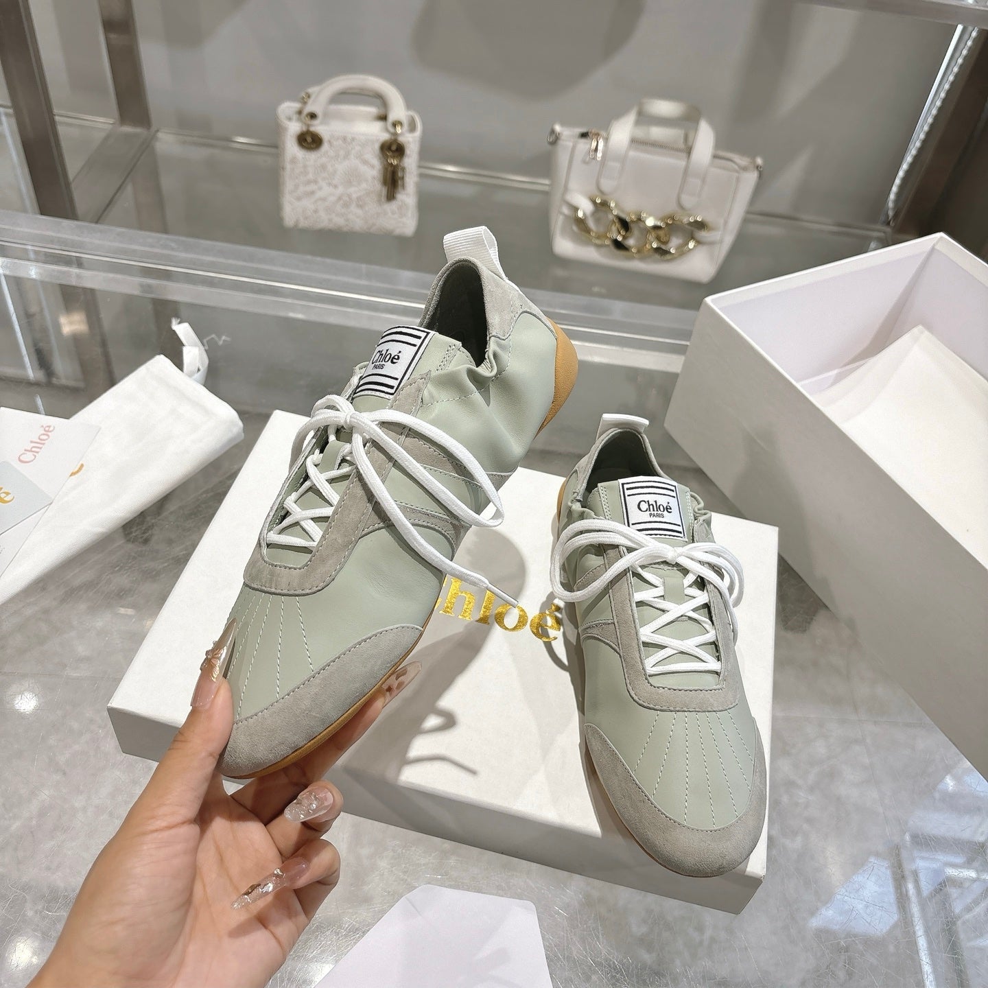Chloe Sneaker casual shoes light sage green cowhide 518813