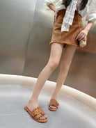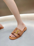 CHLOÉ HLOE MARCIE SLIDE IN BRONZE BROWN CALFSKIN WITH GOLD HARDWARE