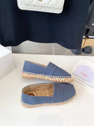 CHLOÉ LOAFER SHOES IN PIGEON BLUE DENIM AND WOVEN RAFFIA