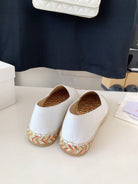 CHLOÉ LOAFER SHOES IN WHITE DENIM AND WOVEN RAFFIA