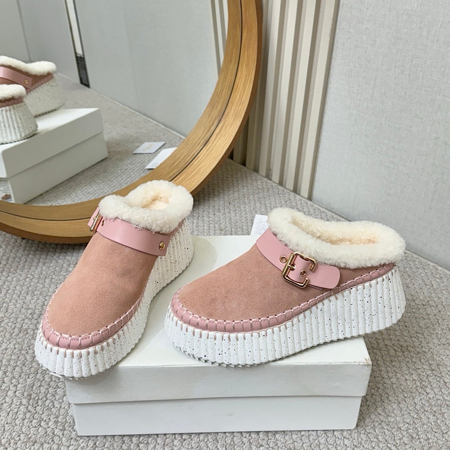 Chloe Nama Shearling-Lined Mule Pink Suede 528075