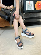 CHLOÉ NAMA WEDGE SANDALS IN GREY FABRIC AND WHITE RUBBER