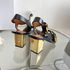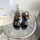 CHLOÉ REBECCA LOW HEELED SANDAL IN BLACK LAMBSKIN GOLD HARDWARE