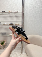 CHLOÉ THONG SANDALS IN BLACK CALFSKIN AND CANVAS