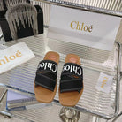 CHLOÉ WOODY MULE IN BLACK DENIM WITH WHITE LOGO