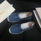 CHLOÉ WOVEN LOAFER IN NAVY BLUE DENIM AND COLORFUL RAFFIA
