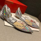 CL Mechante Reine Flats Spike Leather and PVC Silver