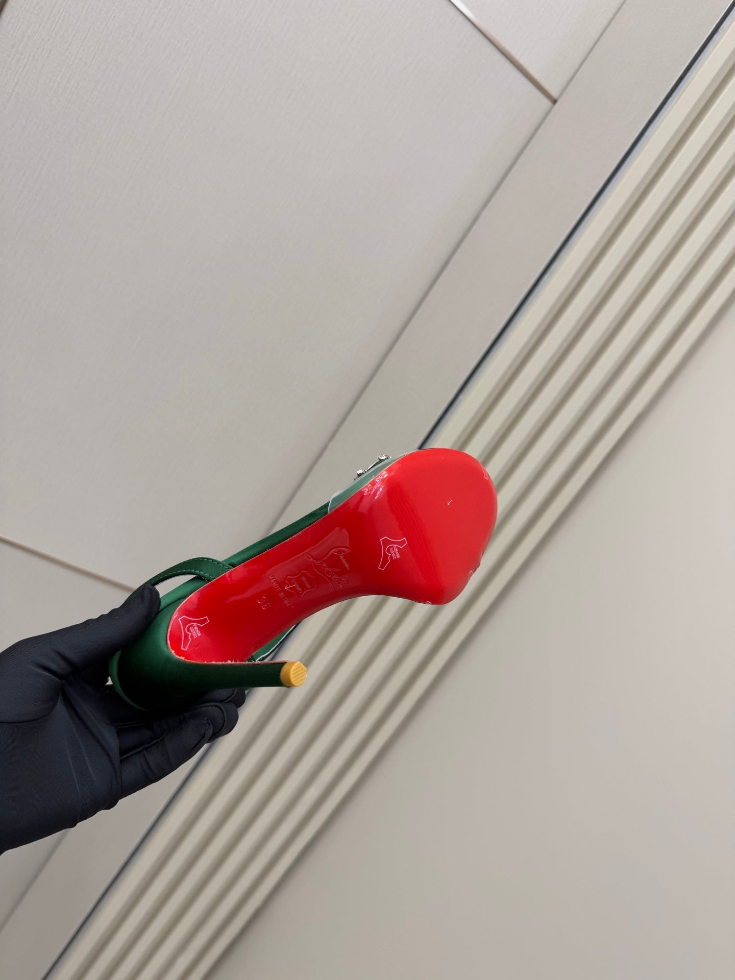 CL Diamond Sandals 10.5cm Green Silk 299881