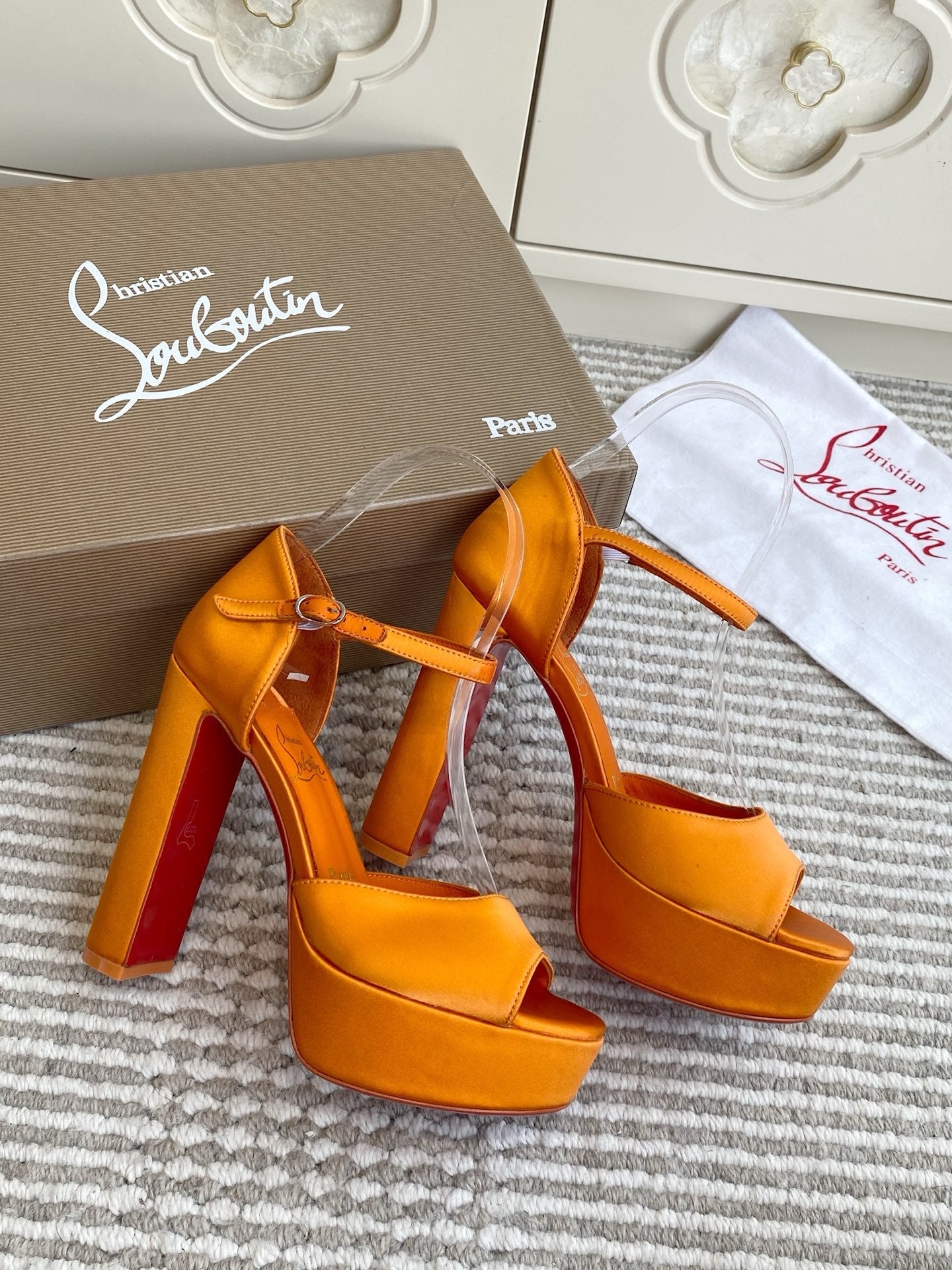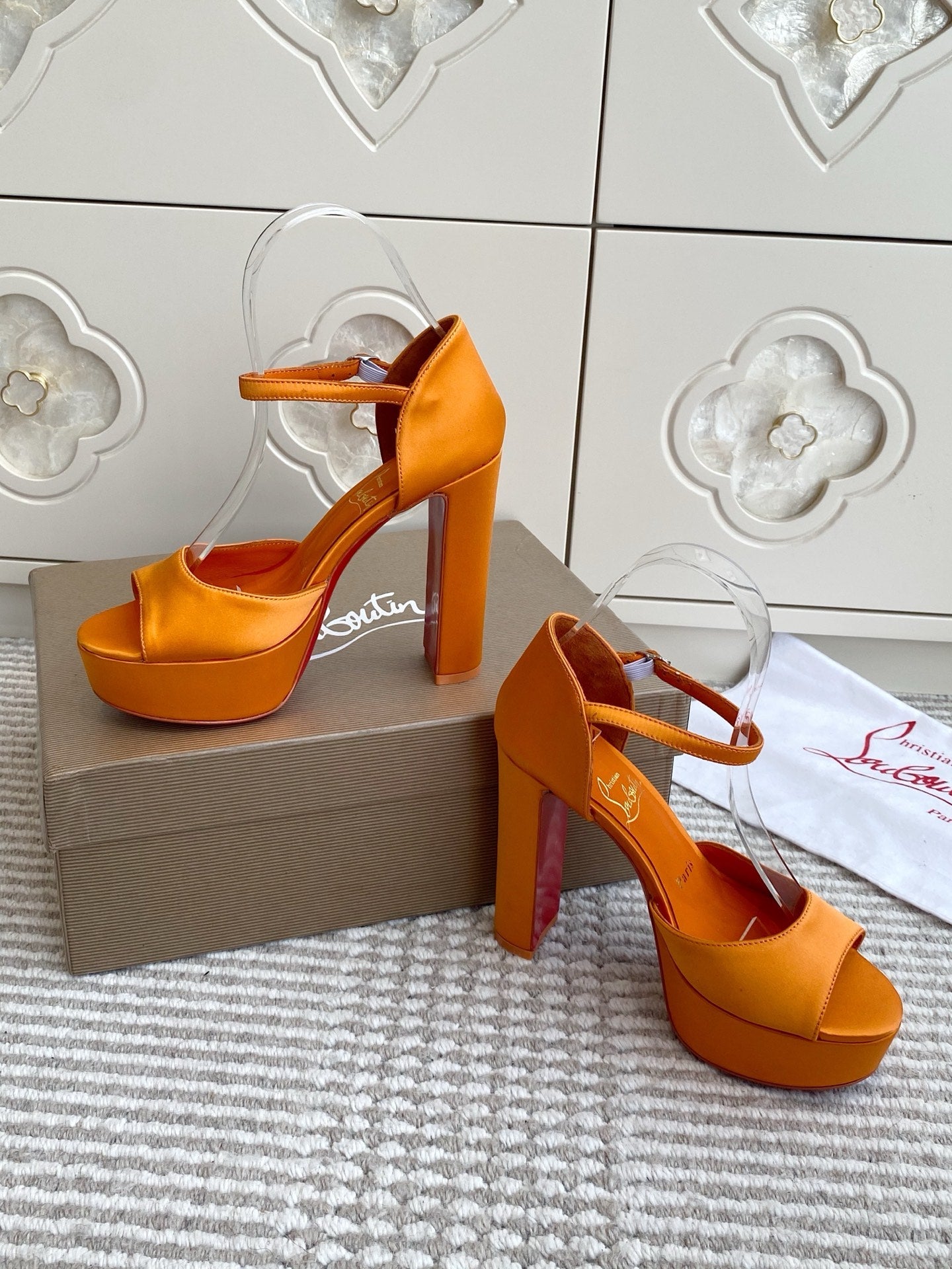 CL Sandaloo Ankle-Strap Platform Sandal Orange Fabric 542785